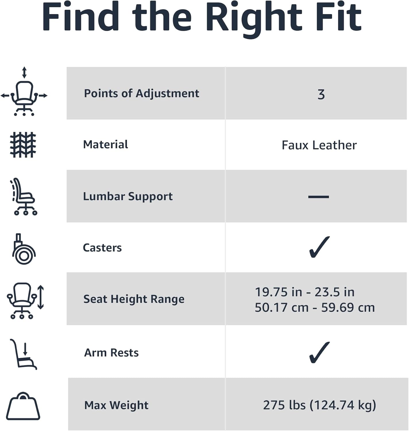 Amazon Basics Classic Puresoft PU Padded Mid-Back Height Adjustable Office Computer Desk Chair with Armrest, 26"D x 23.75"W x 42"H, Black