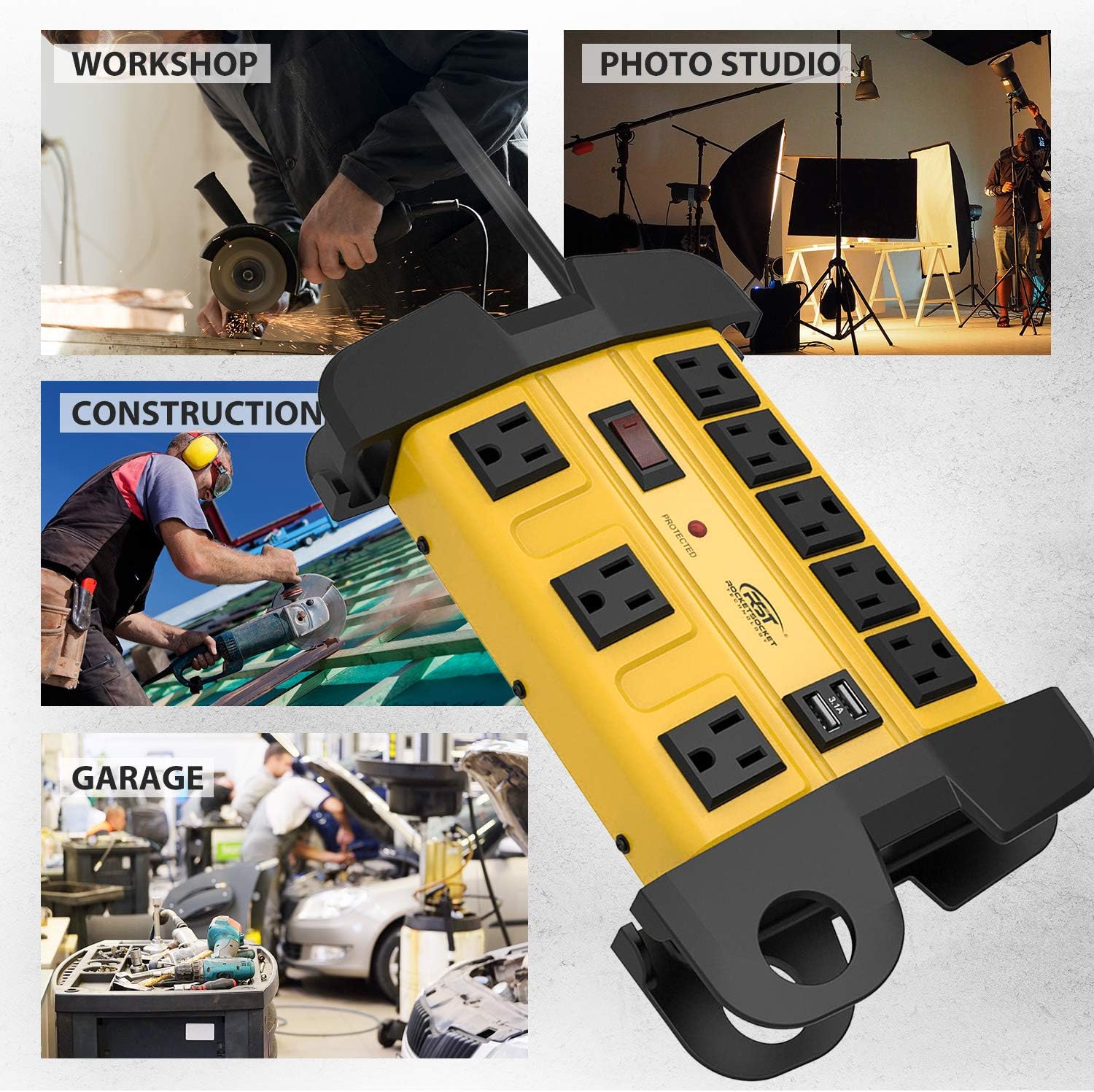 - [Super Durable, Heavy Duty Construction & Strong Extension Cord]: The metal casing and flame-retardant reinforced plastic frame make the power strip strong enough to withstand shock and heat. 14 AWG heavy duty extension cord giving you peace of mind.
