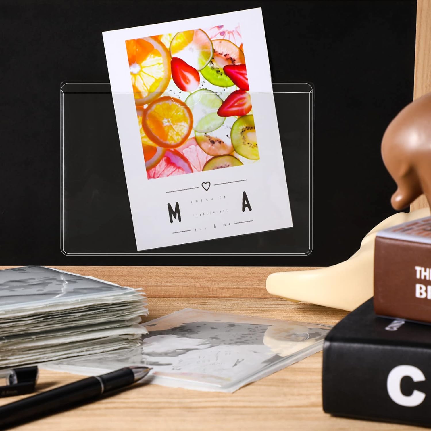 - Applicable Cards:The outer size of clear adhesive pockets is 4.33 x 6.3 inches,fits cards up to4 x 6 inches.You will recieve 50 self-adhesive card holder for labels, waterproof, dustproof, and fingerprint-resistant.
