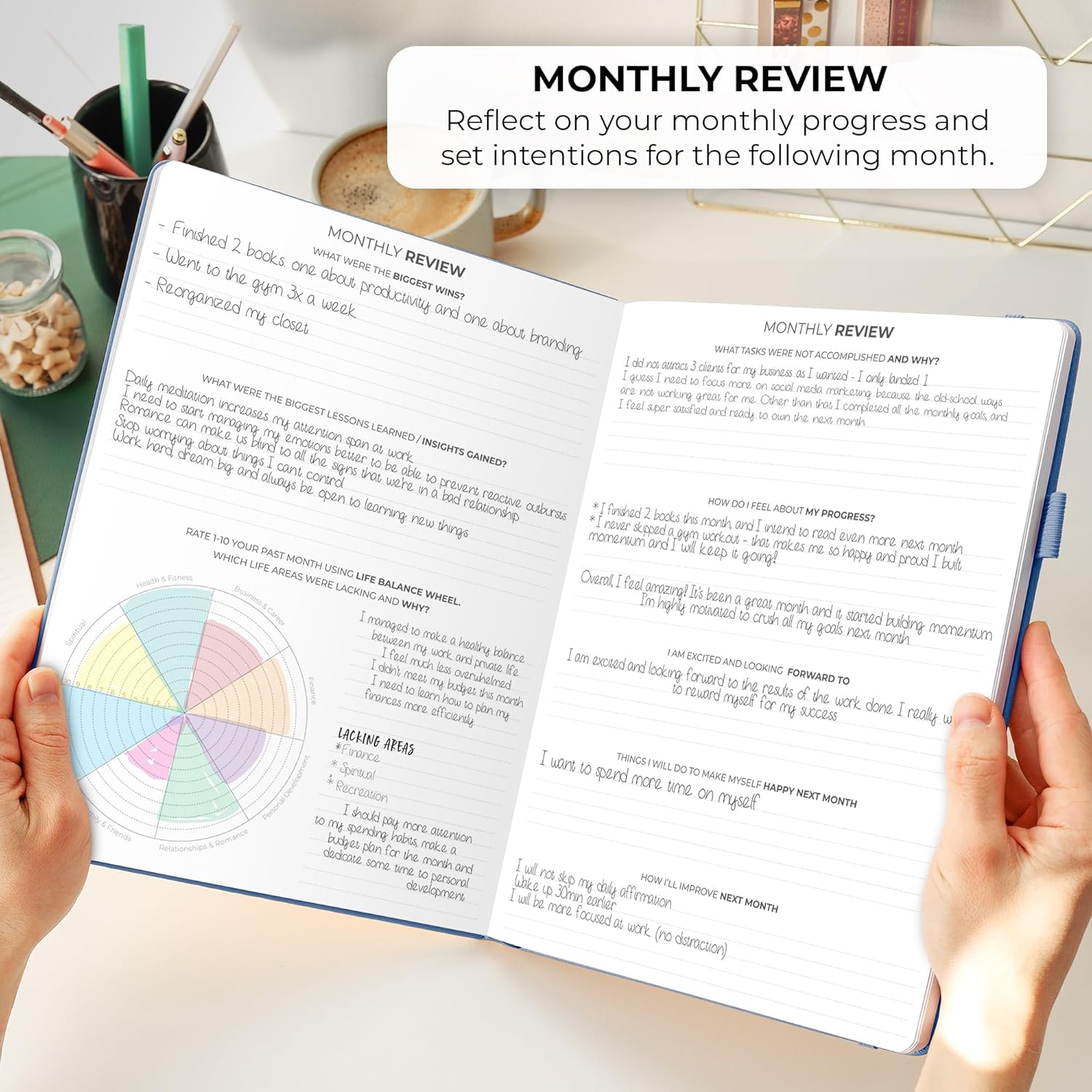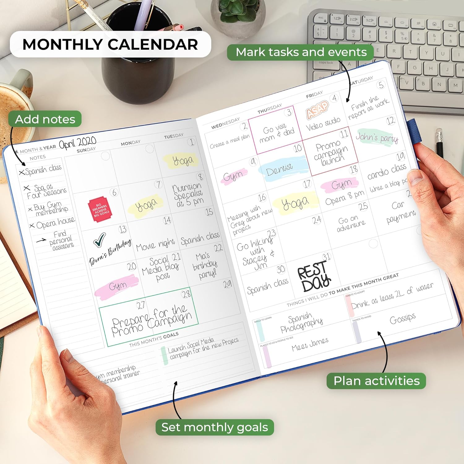 - TOP QUALITY, USER GUIDE & STICKERS - This planner and organizer for women and men comes with stickers, and user guide, an eco-leather cover, thick 120gsm paper, an elastic band, a pen loop, and lay-flat binding.