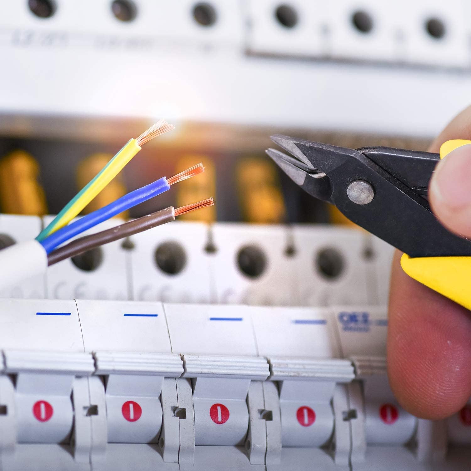 HongWay 5pcs Micro Flush Cutters, Wire Cutter with Internal Spring, Diagonal Cutters for Electronics, Heating Wire, Model Sprue, Soft Copper Wire Snips, 5 Inches, Yellow
