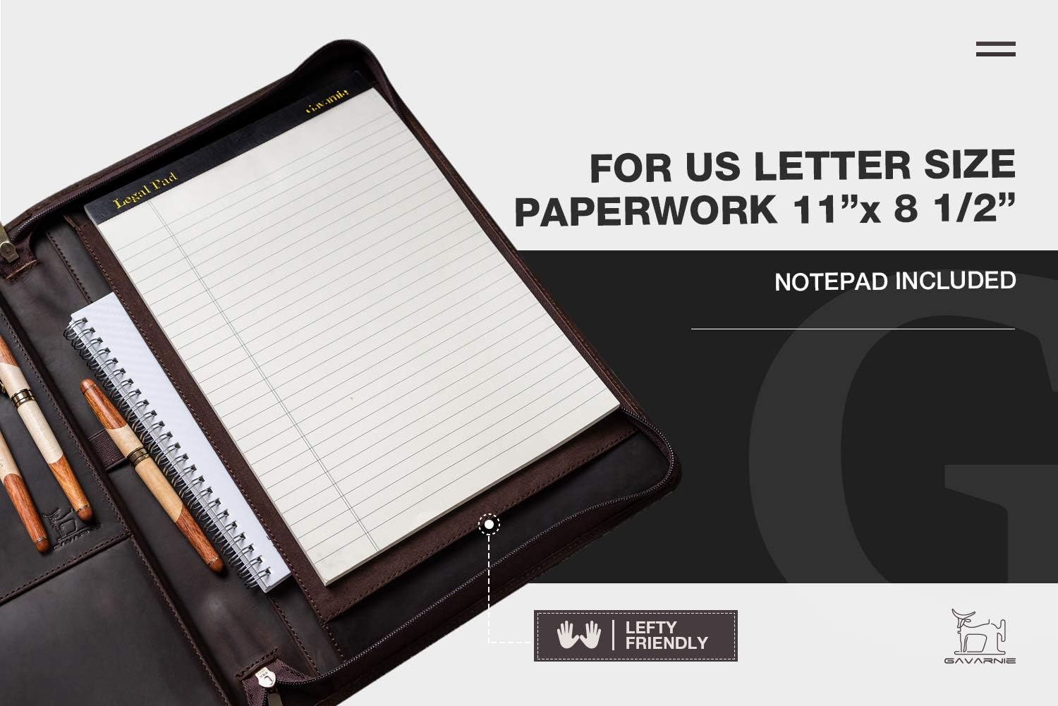 - Gavarnie leather portfolios for men are GREAT Choice for a birthday, anniversary, college graduation, and a new career. This genuine leather portfolio for men comes with a 50-page letter-sized notepad. We are so confident in our men's business leather padfolio that we are including a 30-days return and a one-year FREE replacement warranty. Enjoy the high-end business portfolio now!