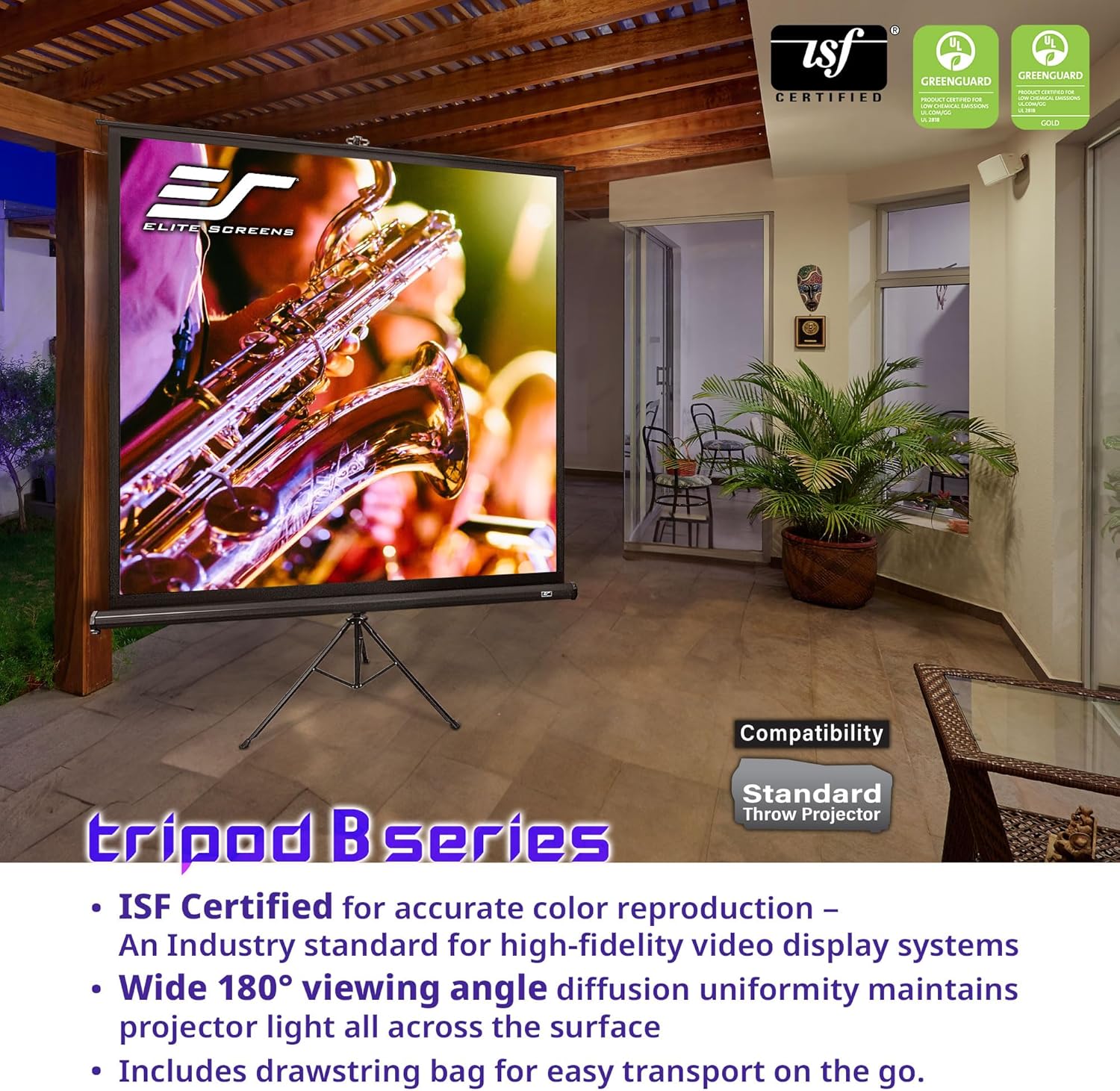 Elite Screens Tripod B, 50-INCH 1:1, Lightweight Pull Up Foldable Stand, Manual, Movie Home Theater Projector Screen, 4K / 8K Ultra HDR 3D Ready, US Based Company 2-Year Warranty, T50SB - Black