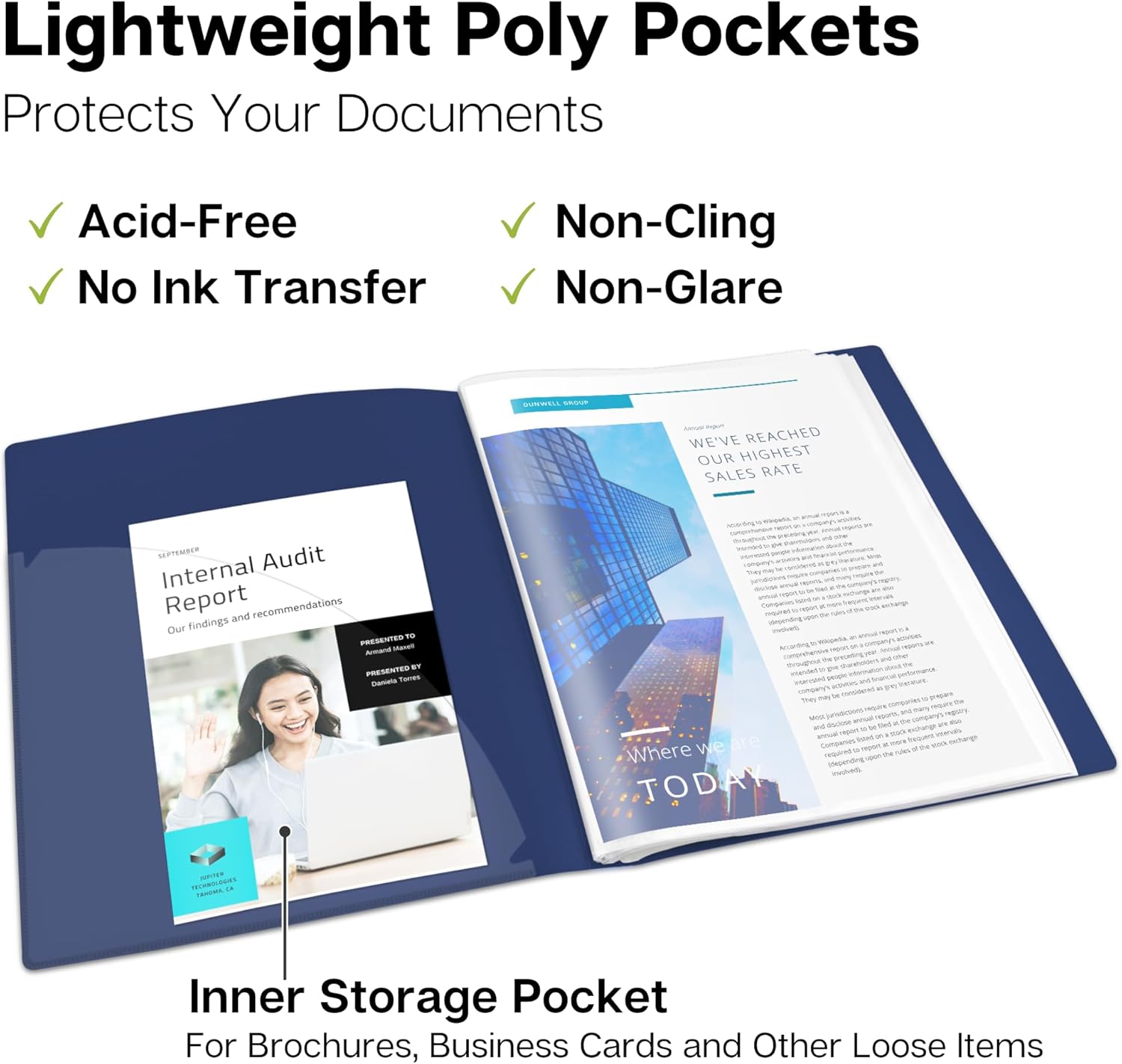 - DURABLE CONSTRUCTION, BUILT TO LAST: Premium plastic covers, reinforced binding resist tearing. Non-glare poly sleeves are dirt and moisture resistant, for a professional appearance every time.