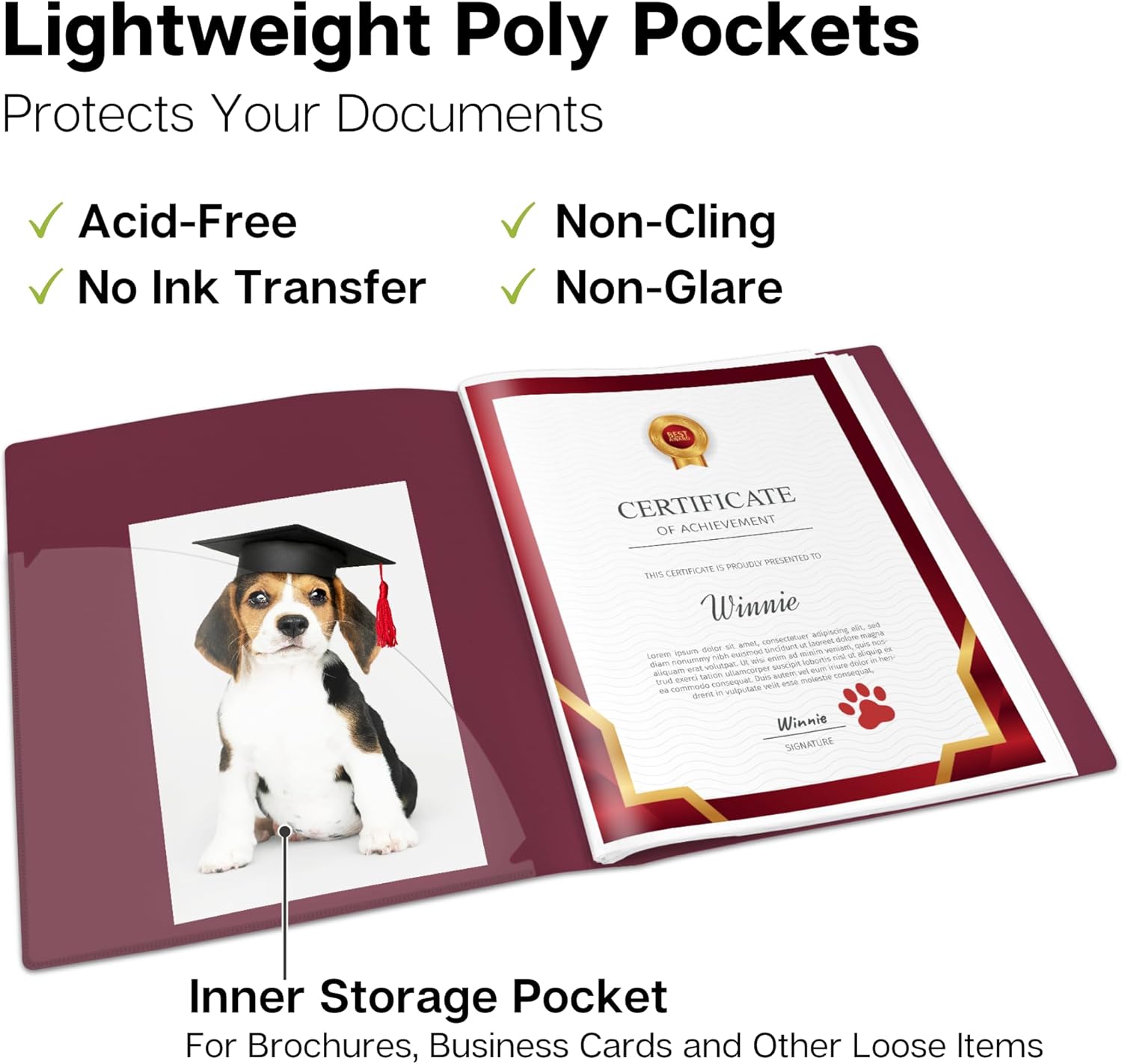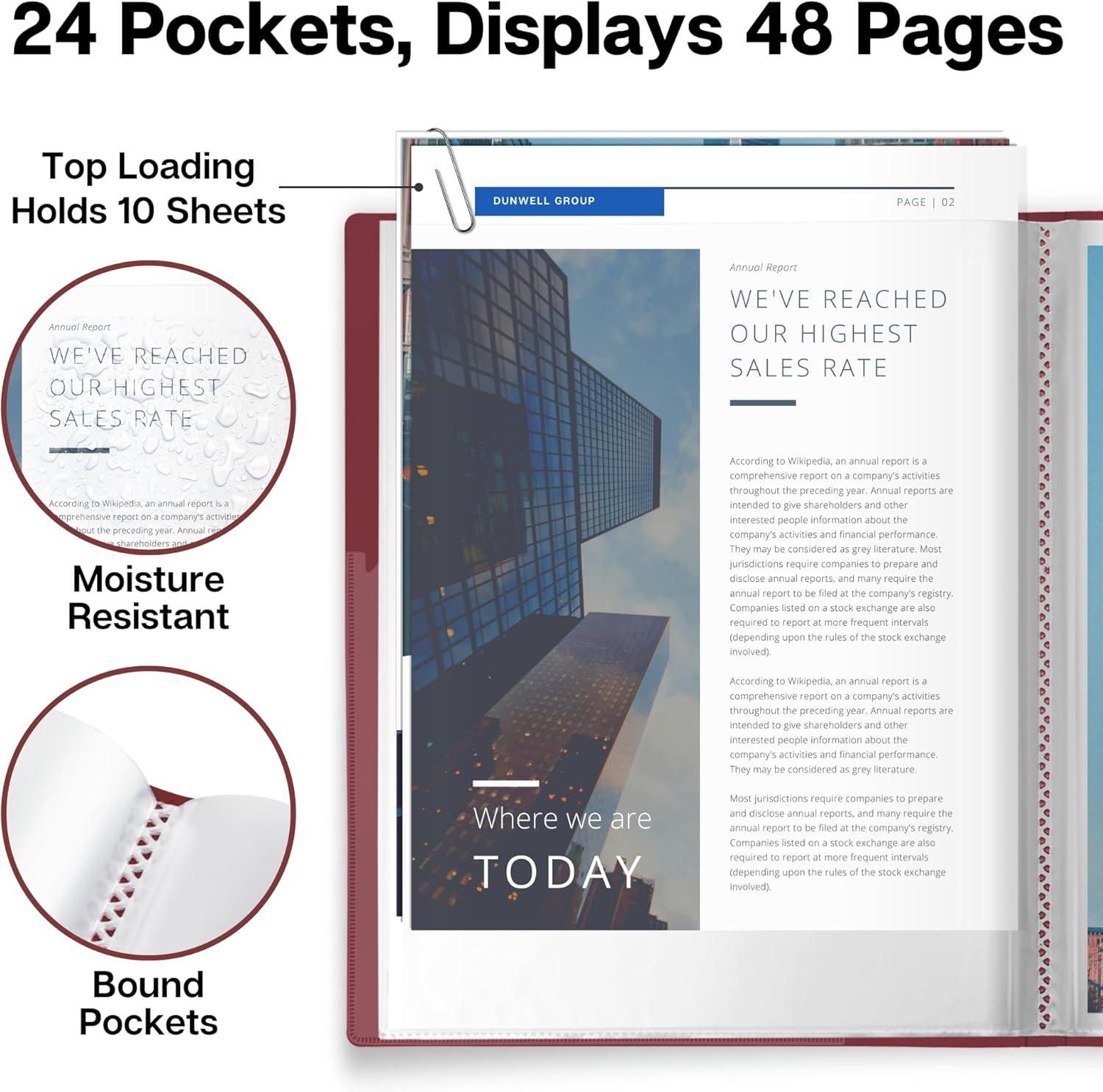 Dunwell Presentation Binder 24-Pocket, Displays 48 Pages, 8.5x11 Portfolio Binder with Plastic Sleeves, Storage and Organizer for Documents, Certificates, Projects, Photos (Ruby)