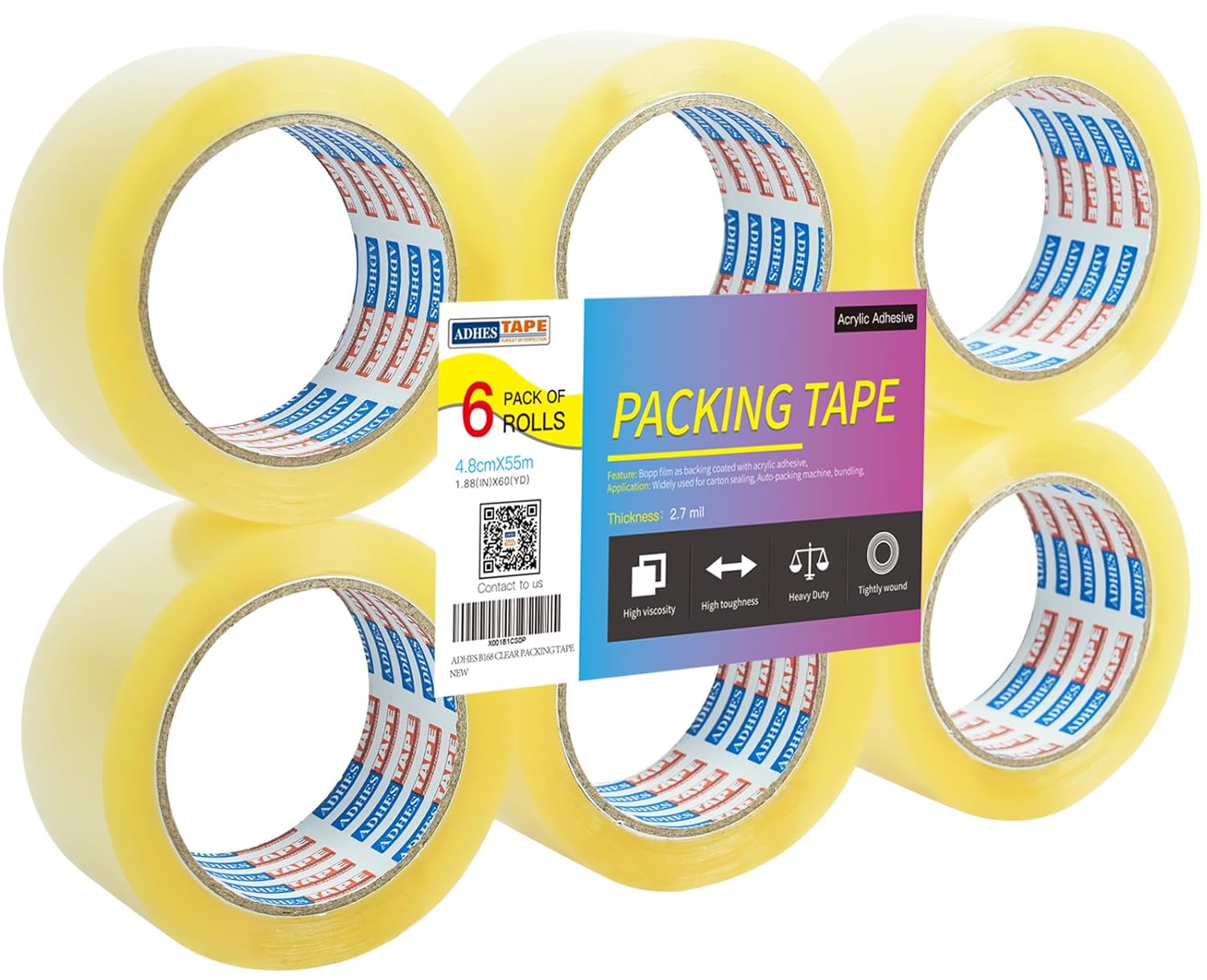 ADHES Packing Tape Shipping Tape Packaging Tape for Moving Boxes, 60yard Per Roll 1.88inch Width 2.7Mil Thickness