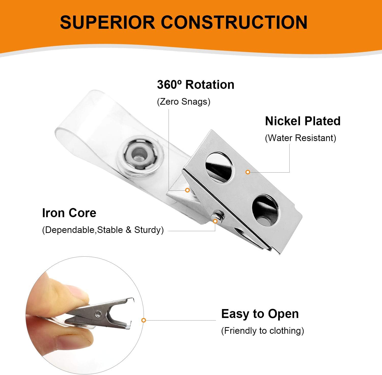 Fushing 100Pcs Metal Badge Clips with Clear PVC Straps for ID Cards and Badge Holders