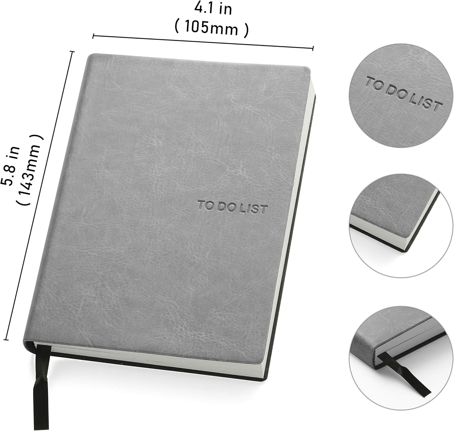 Daily to Do Checklist Notebook, Task Management, Organizer Planner, Hardcover, Ribbon Bookmark, 4.1 x 5.8”, A6 size, 110 Sheets (Grey)