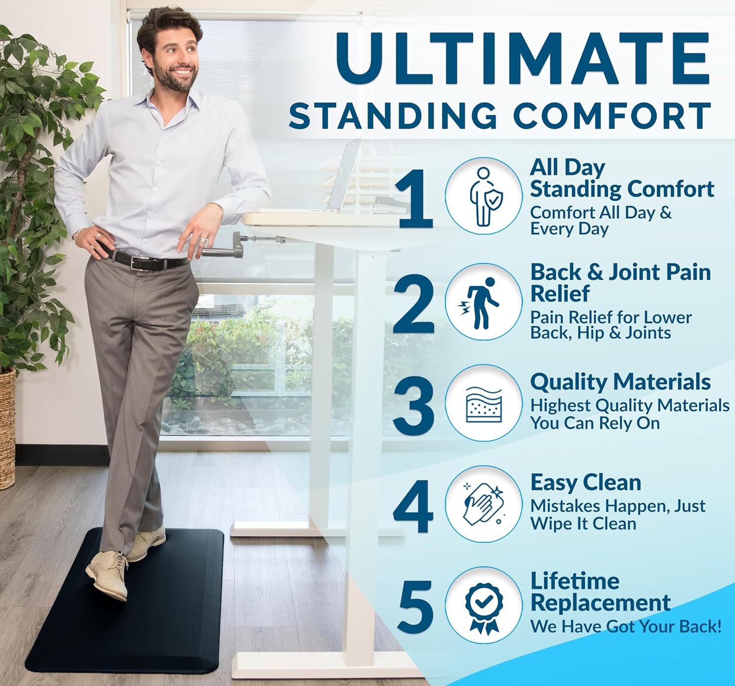 - Exceptional Comfort Anti Fatigue Mat: ComfiLife kitchen mats for floor enhance comfort while standing. It is professionally engineered and can be used as padded kitchen mat or for your standup desk that will not lose support over time. Ideal for use as a standing desk mat., kitchen mats cushioned anti fatigue, kitchen floor mat or anti-fatigue mats for kitchen floor.
