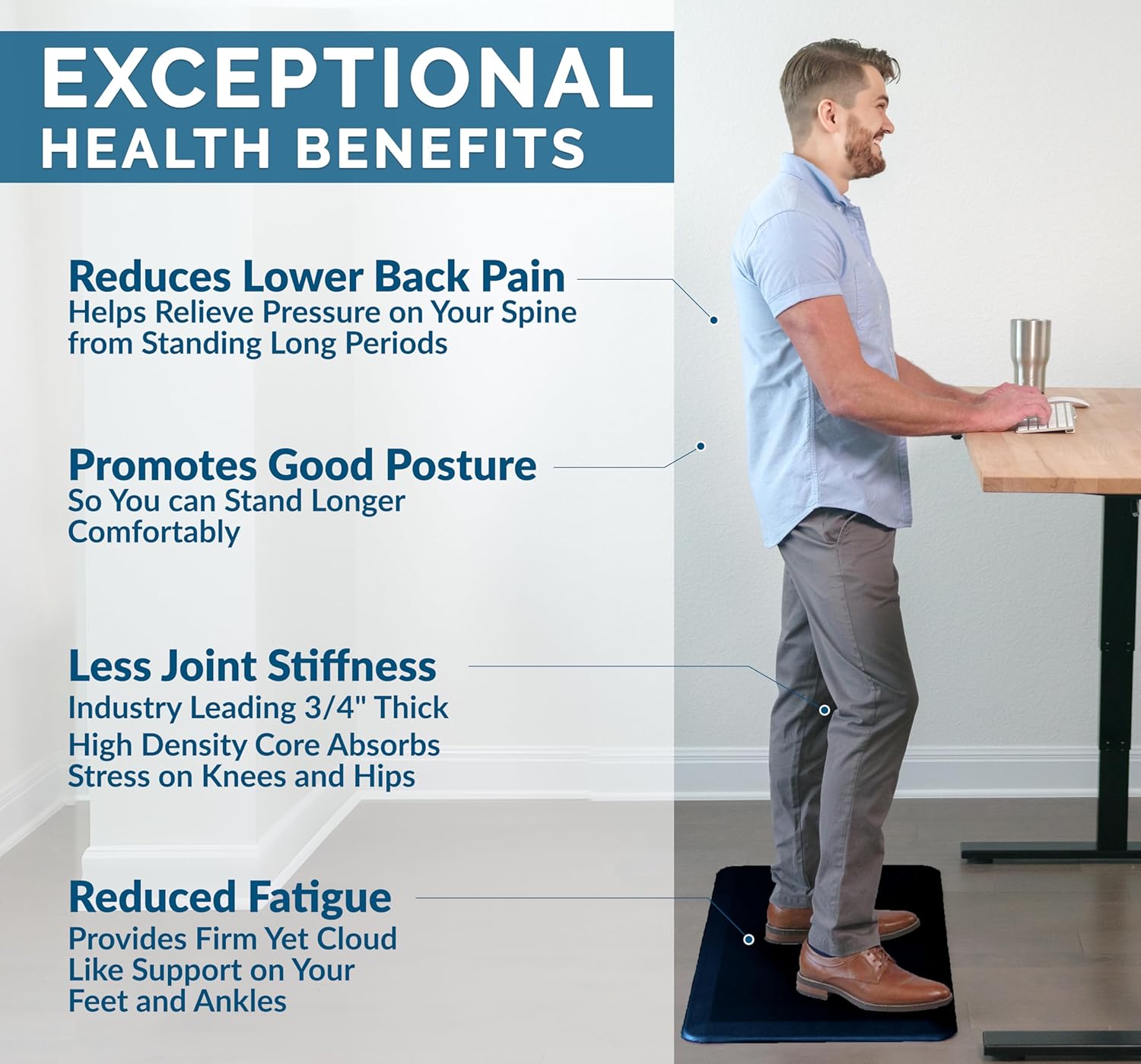 ComfiLife Anti Fatigue Floor Mat – 3/4 Inch Thick Kitchen Mats for Floor, Standing Desk Mat, Kitchen Rug – Comfort at Home, Office – Durable – Stain Resistant – Non-Slip Bottom (20" x 32", Navy)