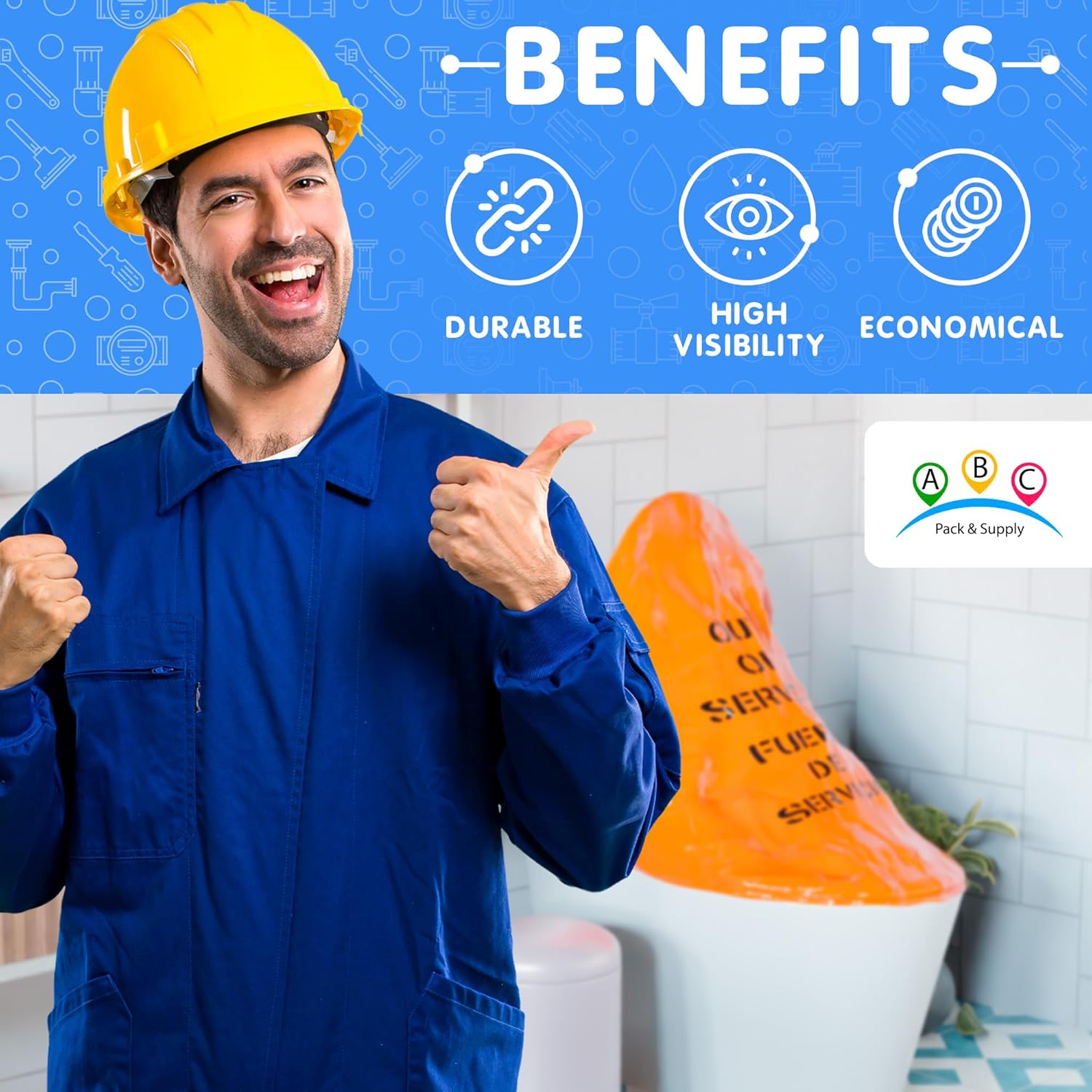 - High Visibility. Warning sign is made with high quality ink that ensures that the covers with "Out Of Service" boldly printed across are perfectly visible to help prevent further damage or overflows from using a broken fixture.