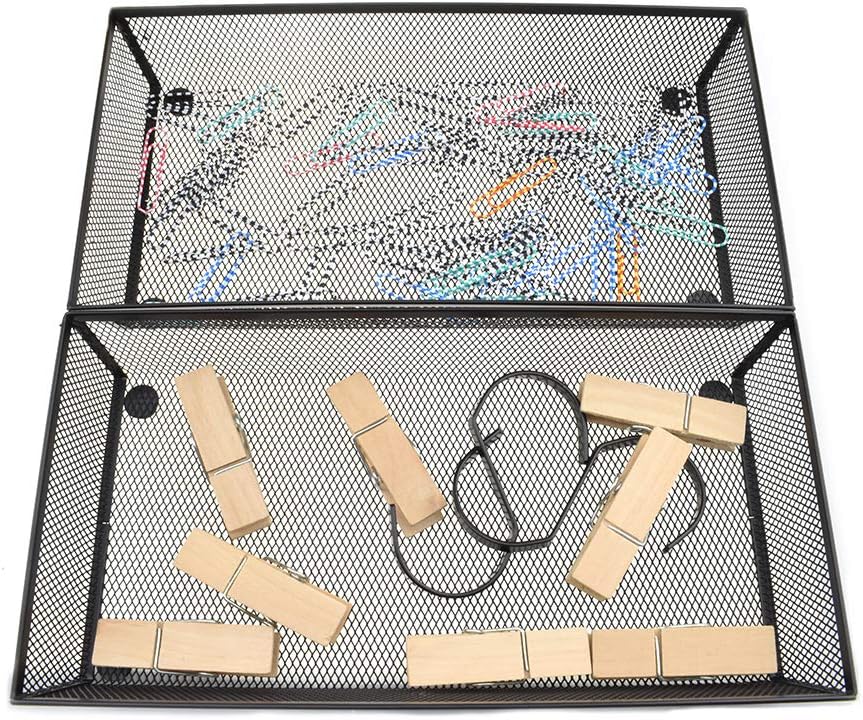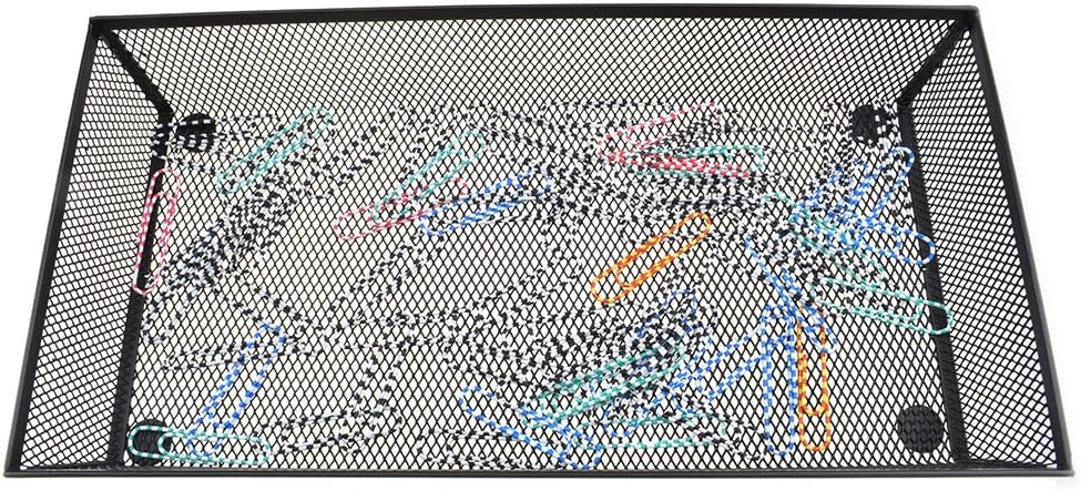 HAHIYO Stackable Mesh Tray Cup 12 x 6 x 2 inches Sturdy Container for Desk Drawer Organizer Collection for Home Office School kitchen Soft Foam Feet No Sharp Edges 1 Pack Black