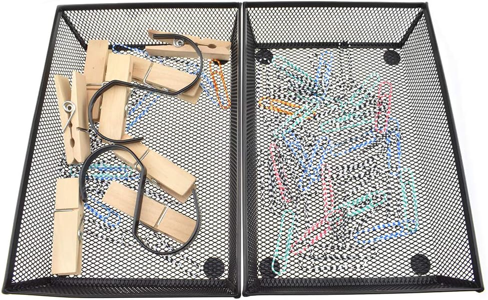 HAHIYO Stackable Mesh Tray Cup 9 x 6 x 2 inches Sturdy Container for Desk Drawer Organizer Collection for Home Office School kitchen Soft Foam Feet No Sharp Edges 1 Pack Black