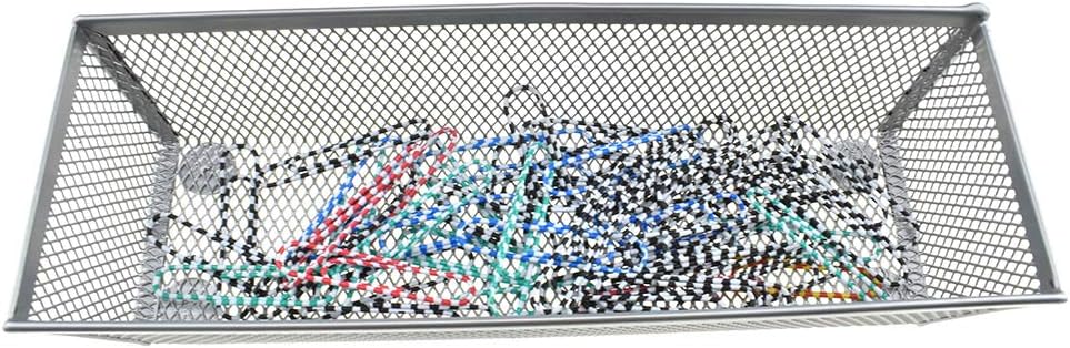 HAHIYO Stackable Mesh Tray Cup 9 x 3 x 2 inches Sturdy Container for Desk Drawer Organizer Collection for Home Office School kitchen Soft Foam Feet No Sharp Edges 2 Pack Silver