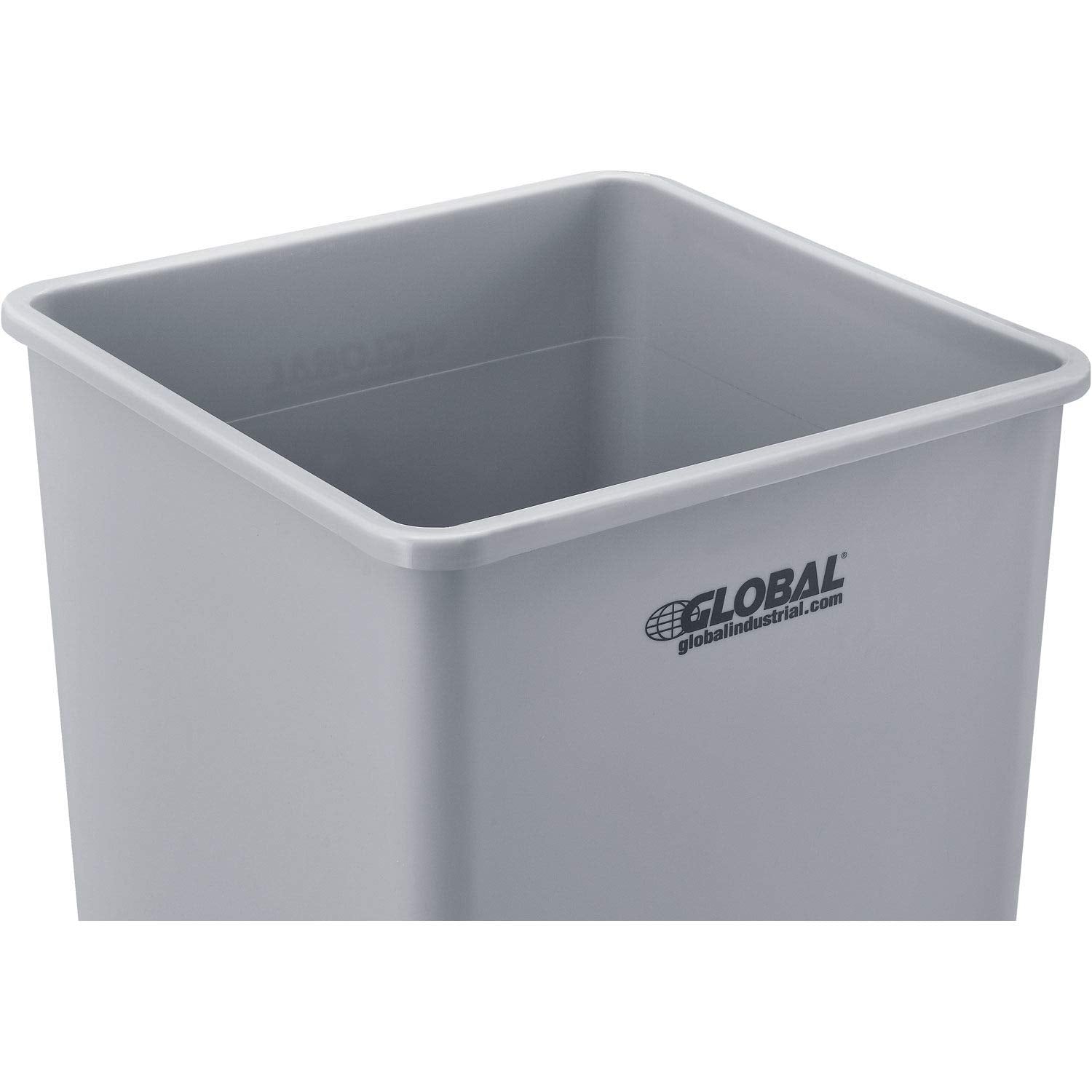 Global Industrial Square Plastic Garbage Can, Open Top, 55 Gallon Capacity, Indoor/Outdoor Rated, 19-1/2"W x 19-1/2"D x 34"H, Utility Trash Can, No Lid, Gray