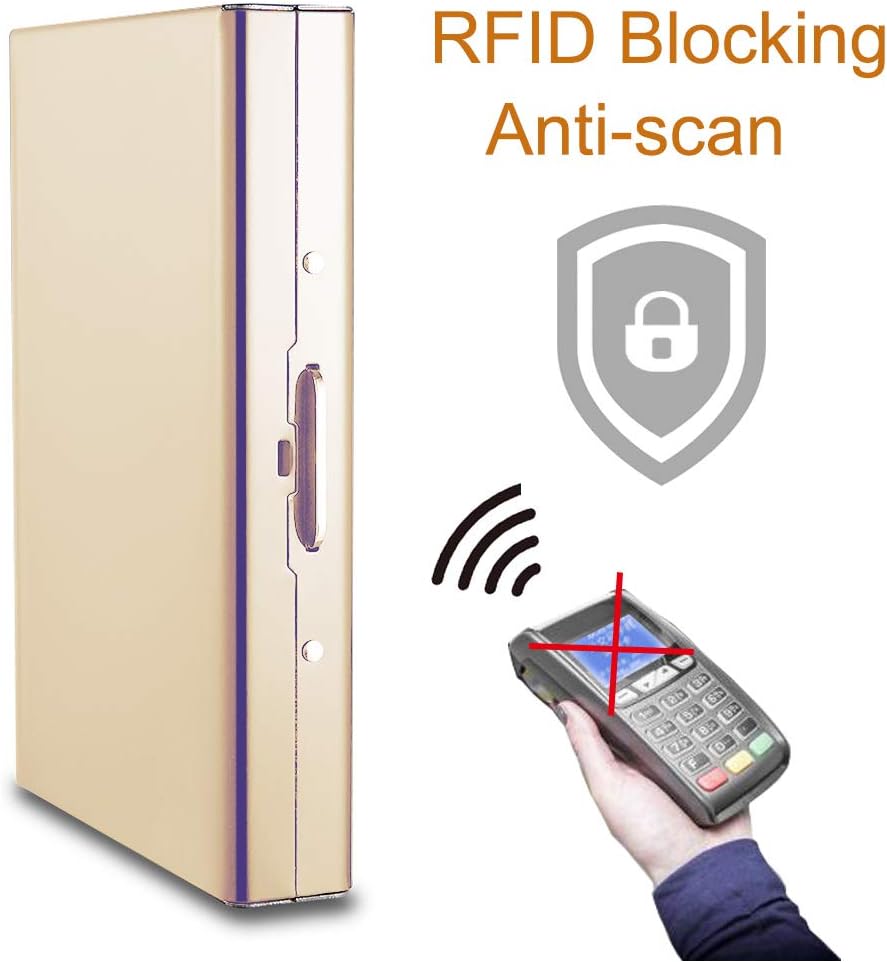 EASTNIGHTS RFID Credit Card Holder Protector Metal Credit Card Wallet Business Card Holder for Men Women Gift Box Package (Gold)