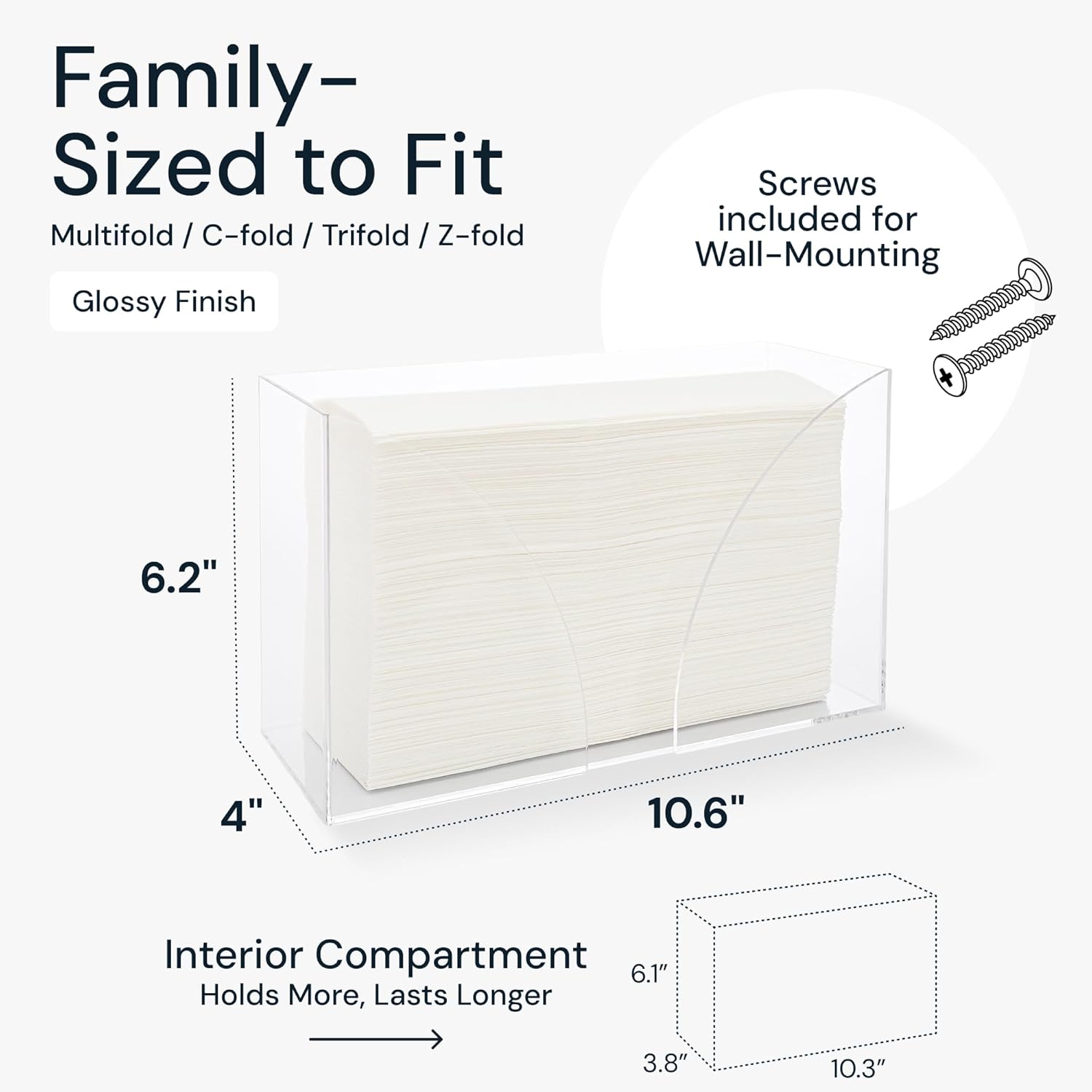 Countertop Paper Towel Holder Dispenser - Clear Acrylic Storage Holder for Kitchen or Bathroom Use for Multifold, C Fold, Trifold, Z Fold Hand Towel Napkins - Commercial or Home Use