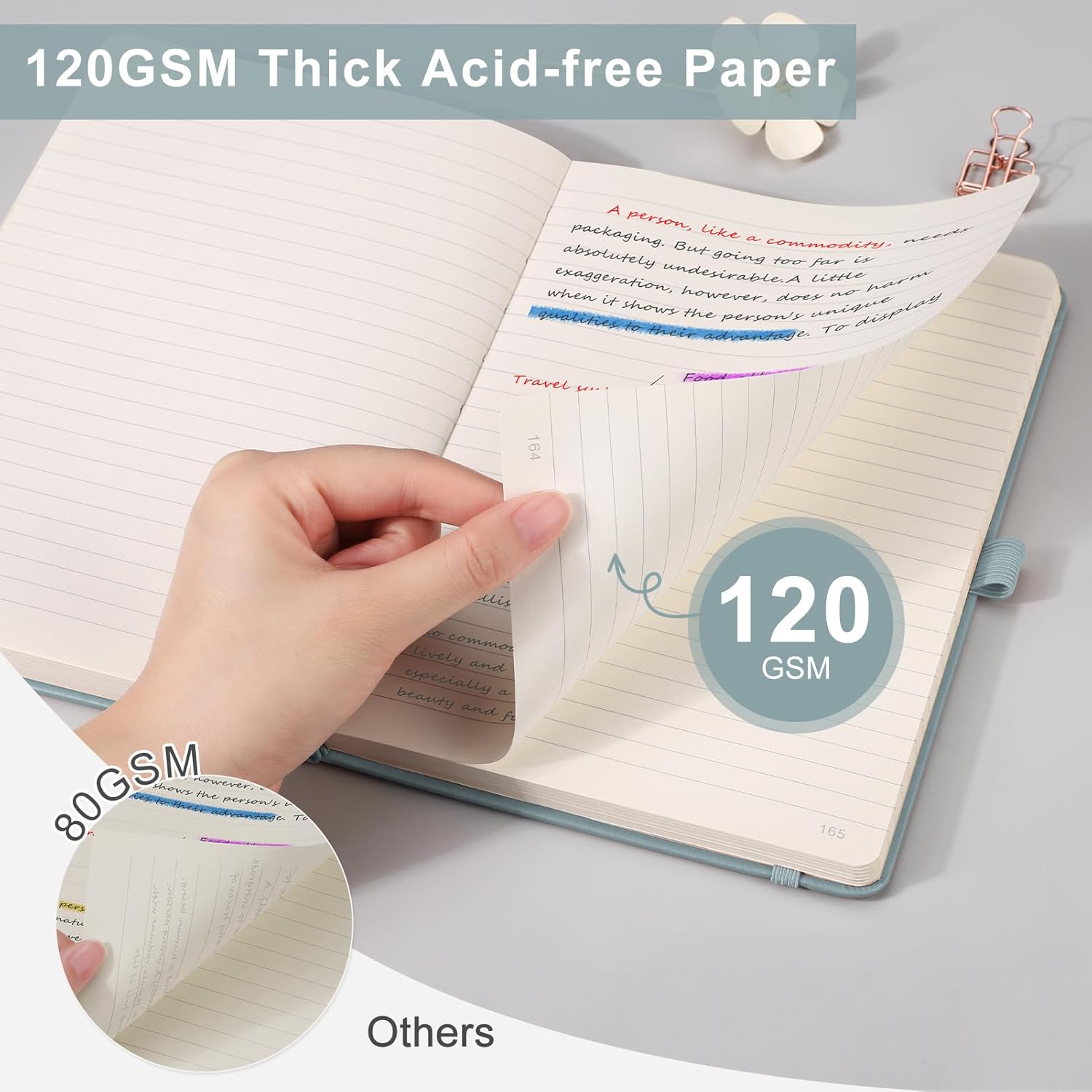 - 256 Numbered Pages with Table of Contents: This journal is thoughtfully designed to provide ample writing space, featuring 256 numbered pages with 16 perforated pages at the back of the journal. You can jot down important notes. The 120 gsm acid-free ivory paper is smooth and thicker than typical notebook paper, preventing ghosting or bleed-through on the pages