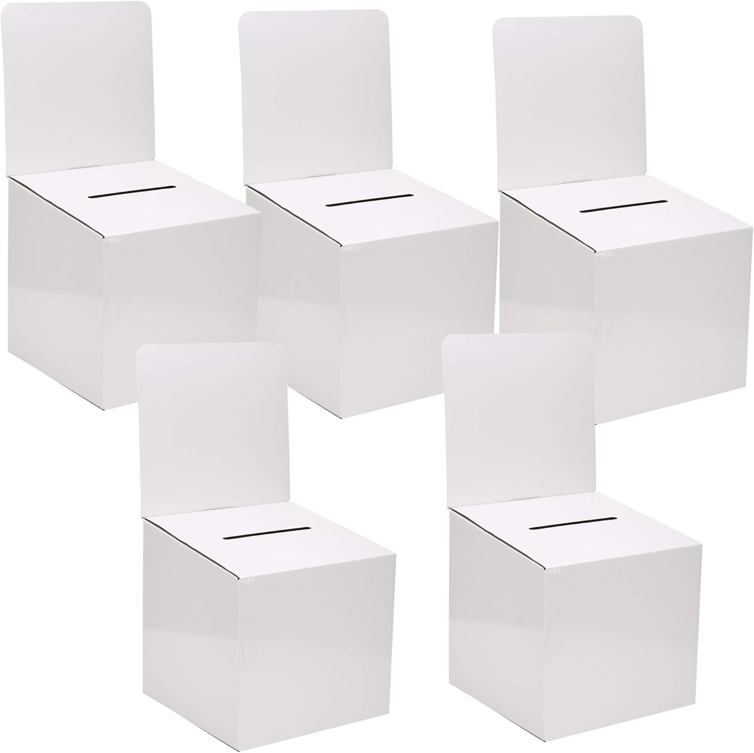 - Ballot Box for Suggestions Donations Raffles White Glossy Cardboard Boxes in Medium Size 6x6x6 inches with Slot for Tickets and Much More