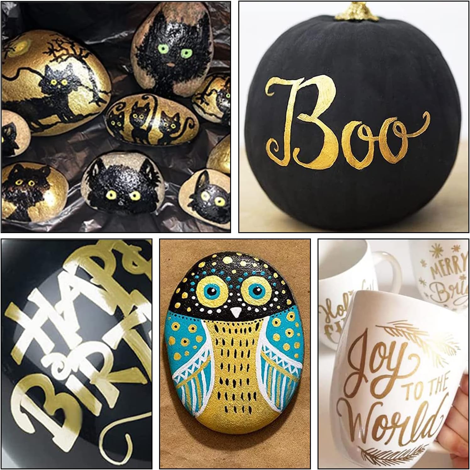 - WORKS ON ALMOST ANY SURFACES: The gold paint pens works on almost any surfaces such as rock, canvas, wood, metal, glass, ceramic, plastic, tire, etc. They are the best tool for creativities