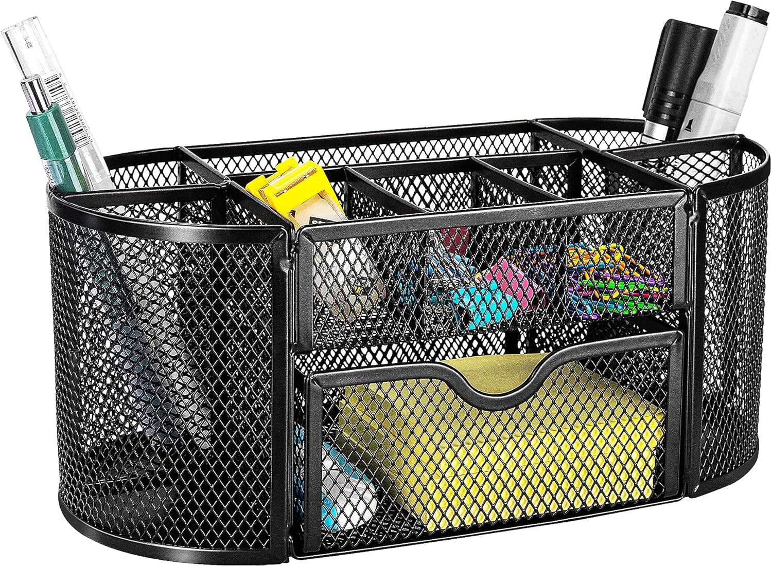 - Desktop organizer with pen holder, pullout drawer, and other compartments