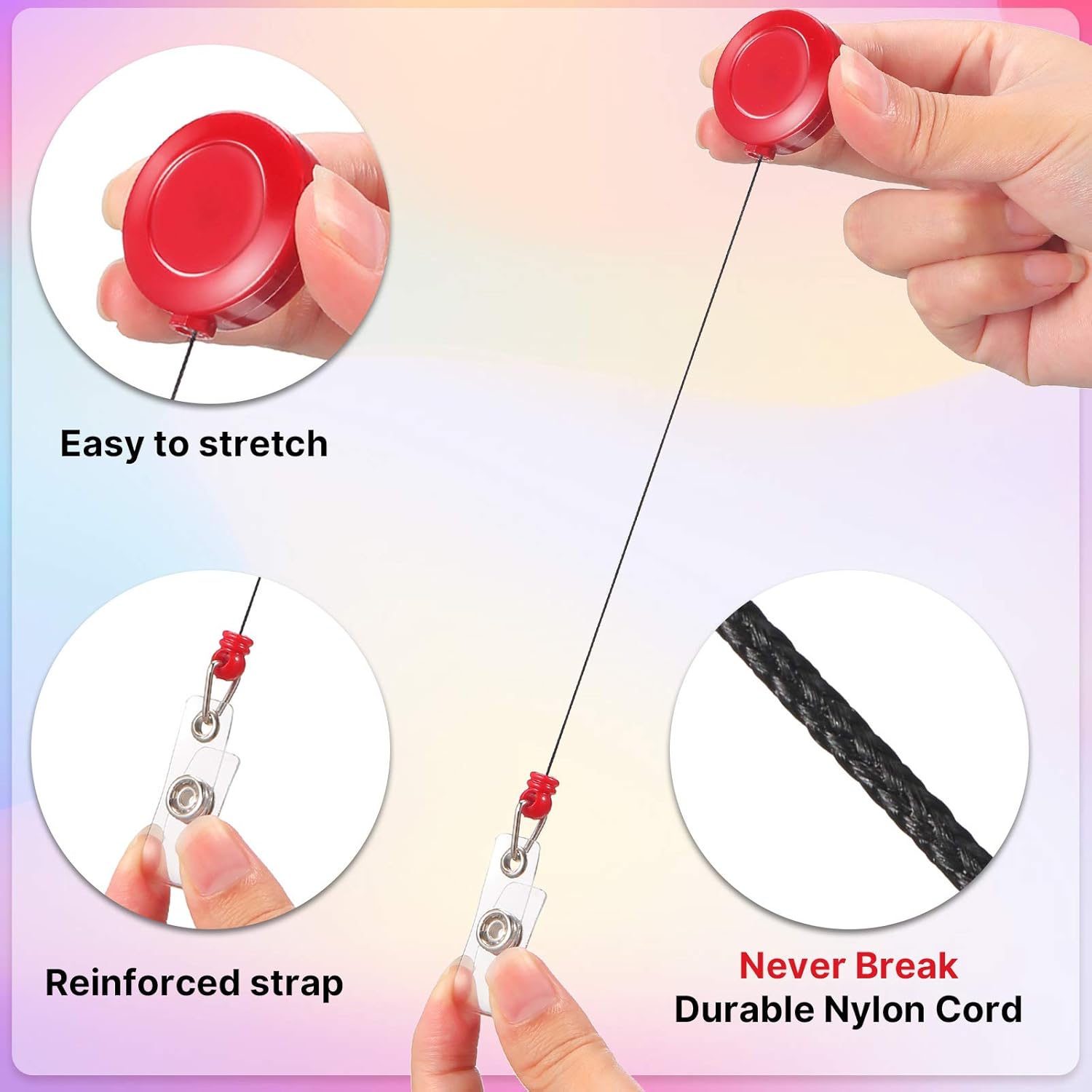 - Durable and sturdy: the retractable badge reel is made of quality ABS plastic and stainless steel, strong and durable, not easy to be broken; The alligator clip on the back can tightly hold your clothes, pants, bags or pockets, you don't have to worry about the badge reel falling off