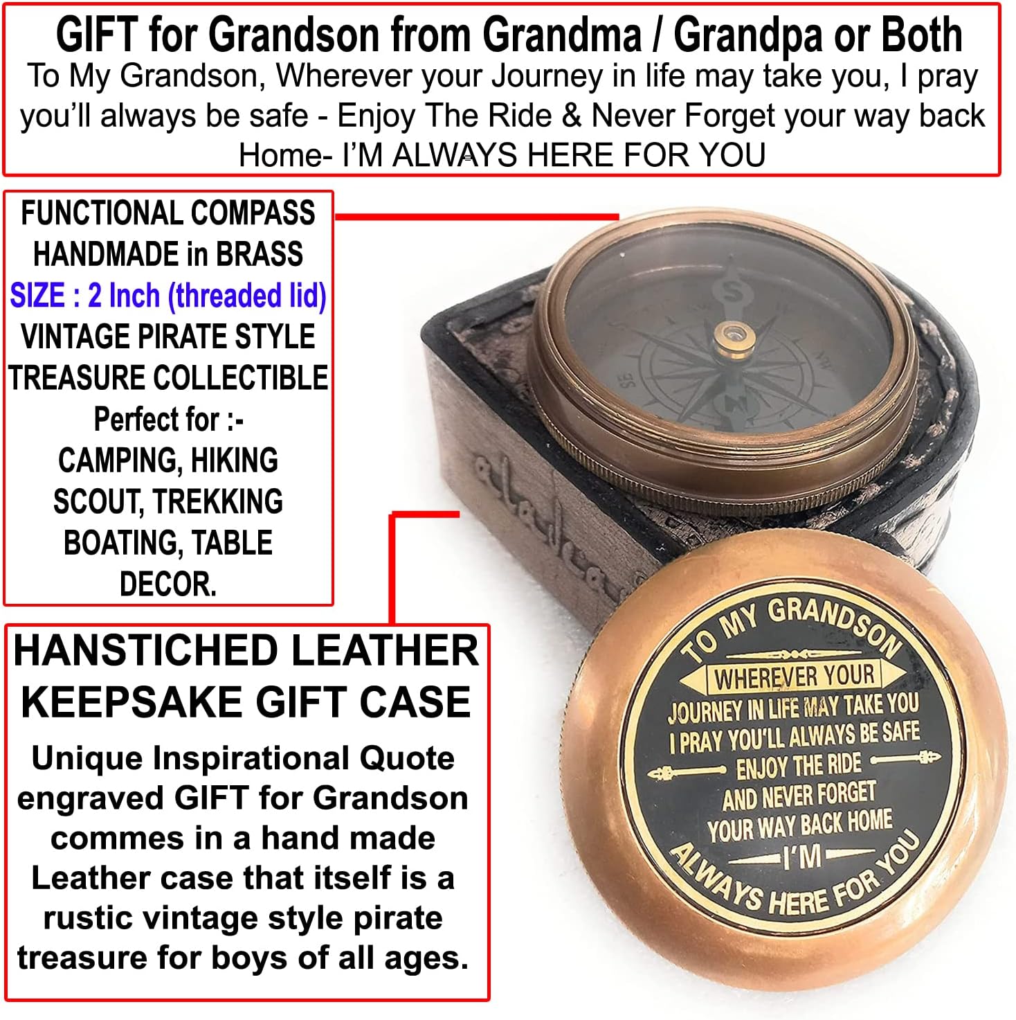 - Gift for Grandson from grandpa Grandma - Engraved Antique Style Brass Compass - Reinforcing & Reminder of Love & confidence for Grandson's Gift idea for boys on Birthday, Baptism, Confirmation, Graduation gift for Him, Boy from grand mother & grand father