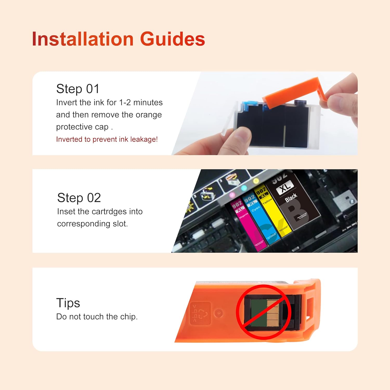 - Easy to install. All ejet for hp ink 902xl color combo pack are tested to ensure high compatibility with your printer along with quality printout