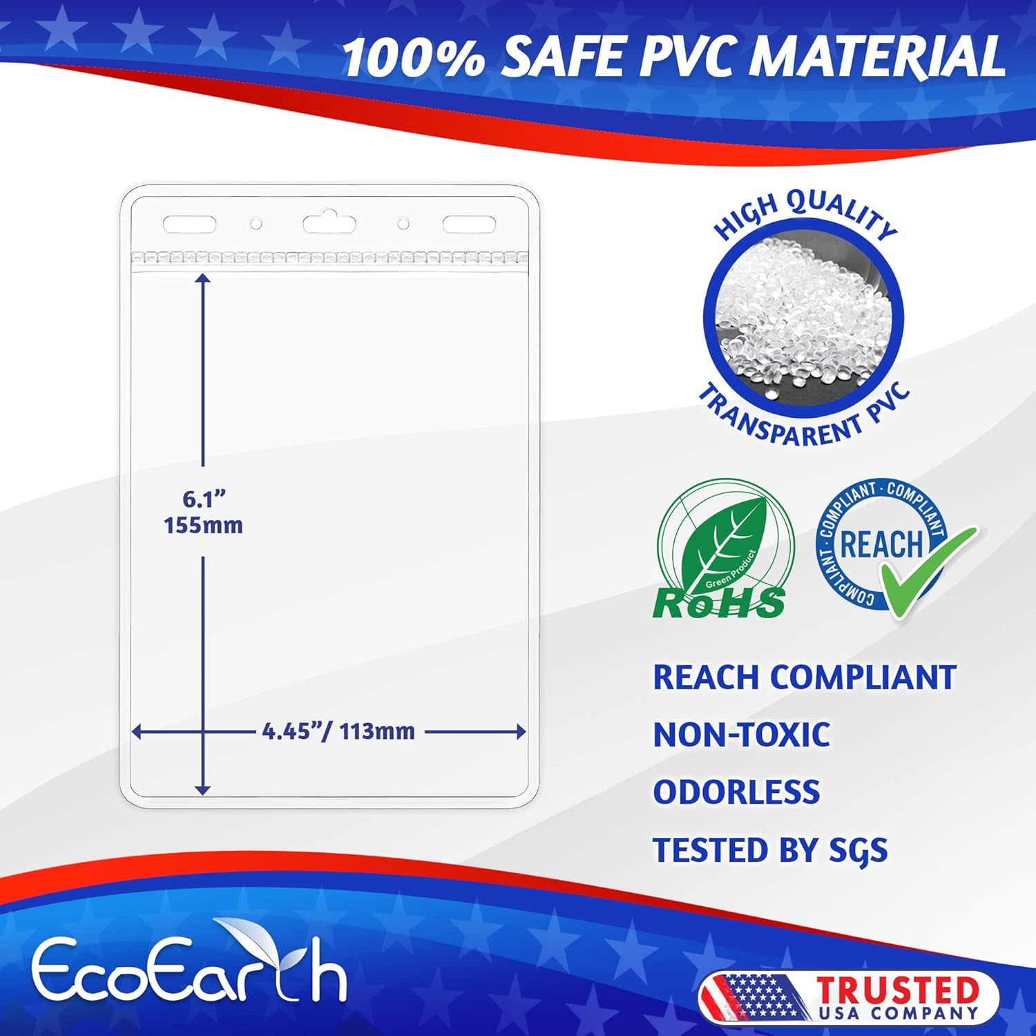 EcoEarth Passport & Identification Card Holders with Soft Edge (Clear, 4x6 Inch, 10 Pack), Extra Large Vertical ID Holder, Zipperless Plastic Name Badge Holders