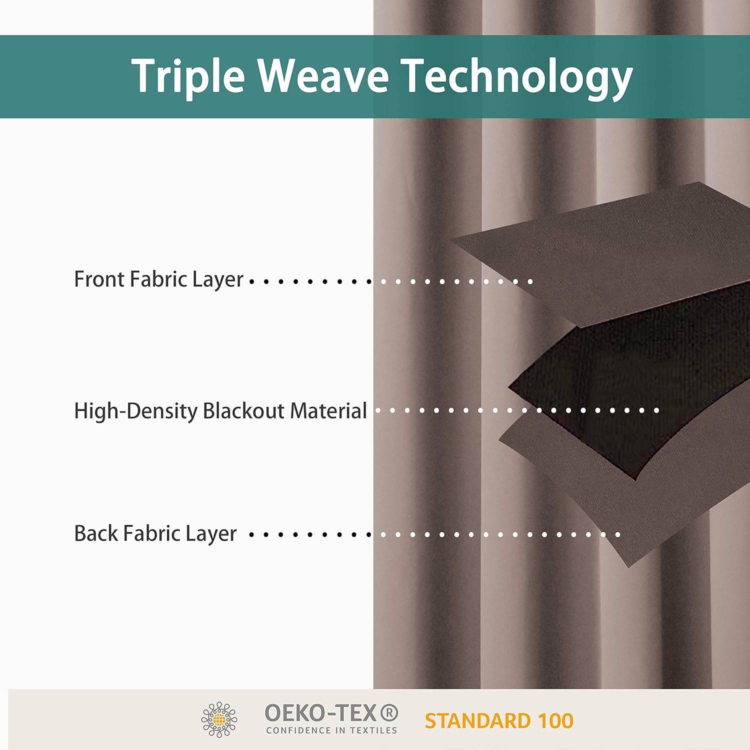 - PREMIUM BLACKOUT MATERIAL: Our room darkening curtain is made of 100% polyester fabric and have the same color with the front and back. Crafted in a certified STANDARD 100 by OEKO‑TEX factory from a durable soft and thick triple weave blackout fabric which block out 90% above sunlight and UV rays. Darker colors work better.
