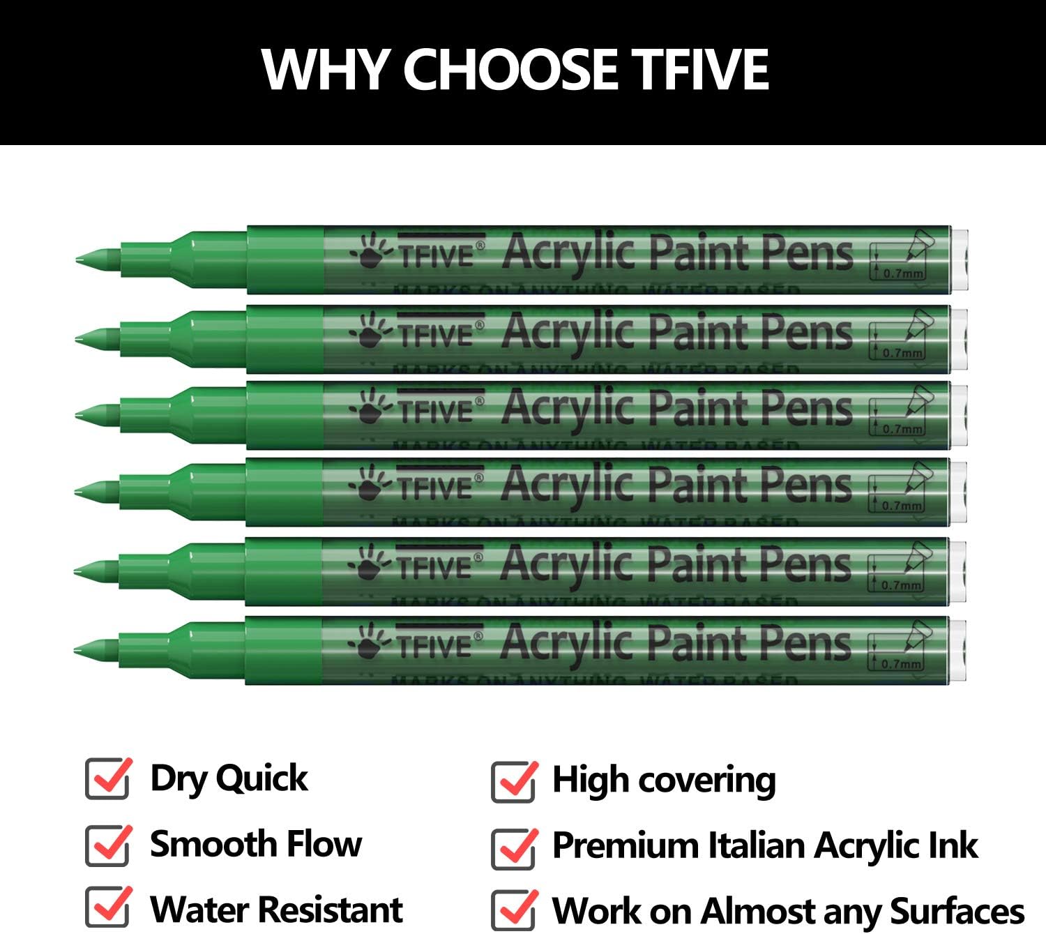 Green Marker Paint Pens - 6 Pack Acrylic Green Permanent Marker, 0.7mm Extra Fine Tip Paint Pen for Art Projects, Drawing, Rock Painting, Stone, Ceramic, Glass, Wood, Plastic, Metal, Canvas DIY Crafts