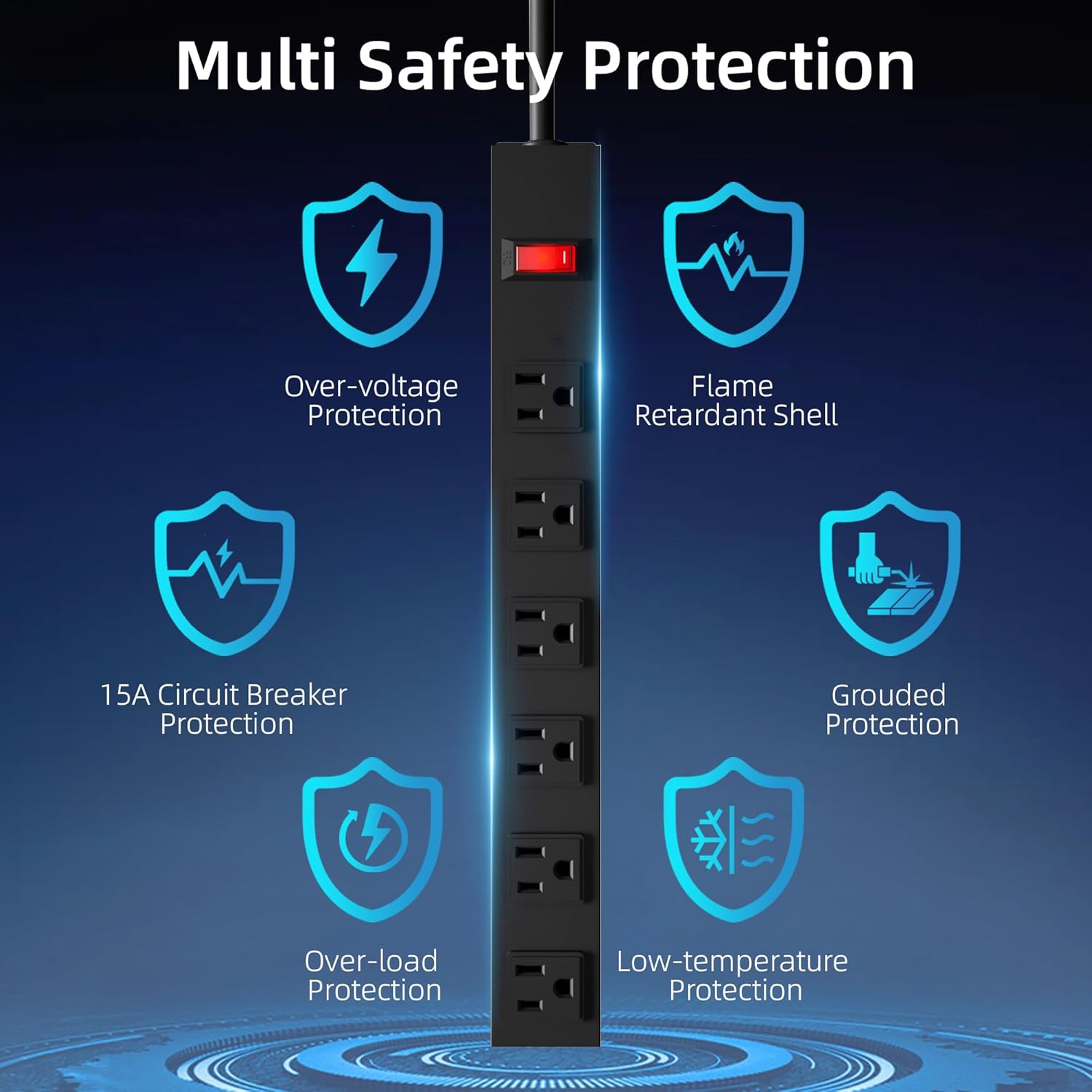 - MANY CHOICES:Heavy duty power strip with a variety of combinations of different number of jacks and different cord lengths to choose from. It meets all kinds of needs in life, and is very suitable for home, office, industrial, workshop, store and so on.