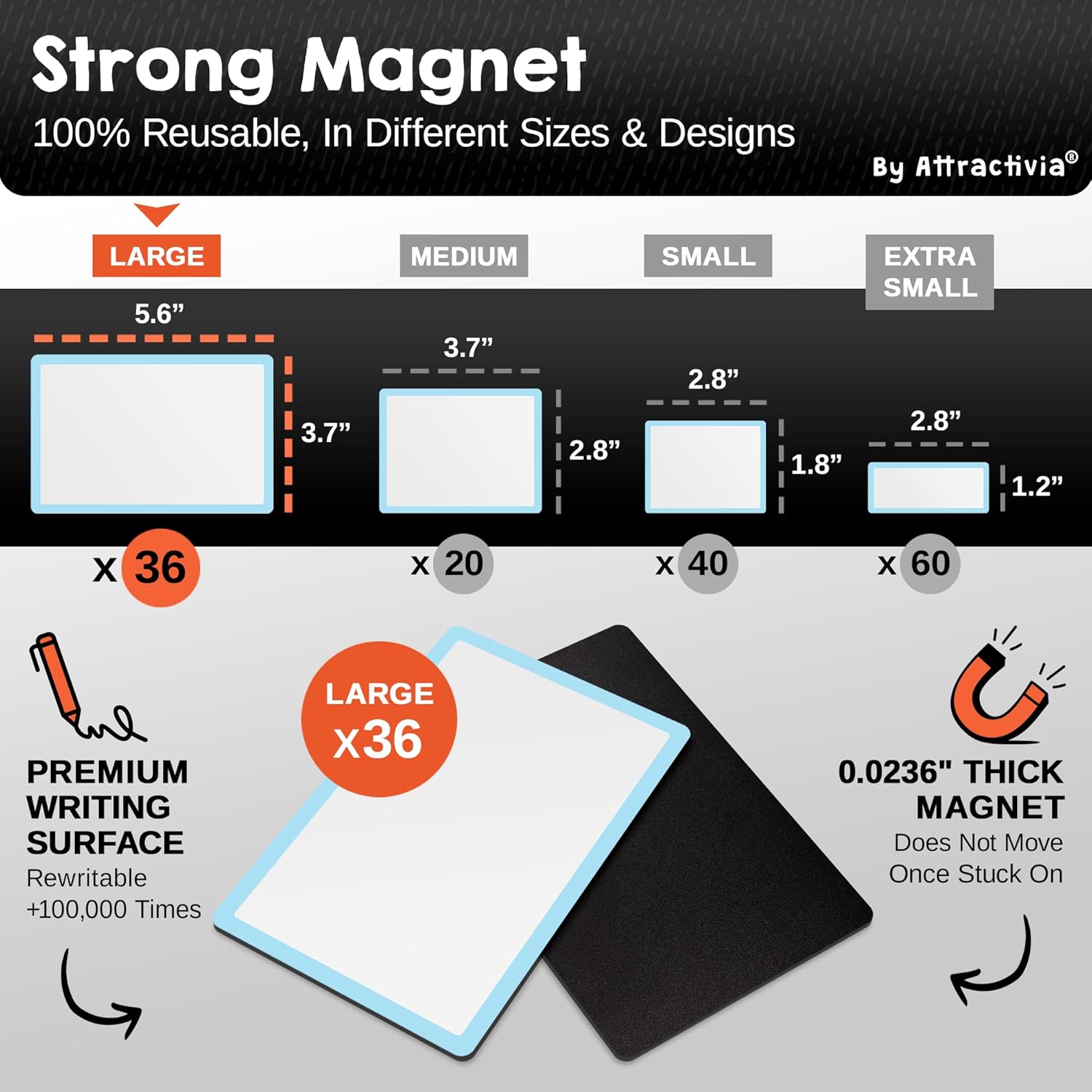 - Instant Organization: Our set of 36 dry erase magnetic labels is perfect for creating writable noticeboards or labeling items at home, in the office, or in a store. These dry erase magnetic labels for dry erase board are also ideal for sorting, identifying, and organizing with ease.