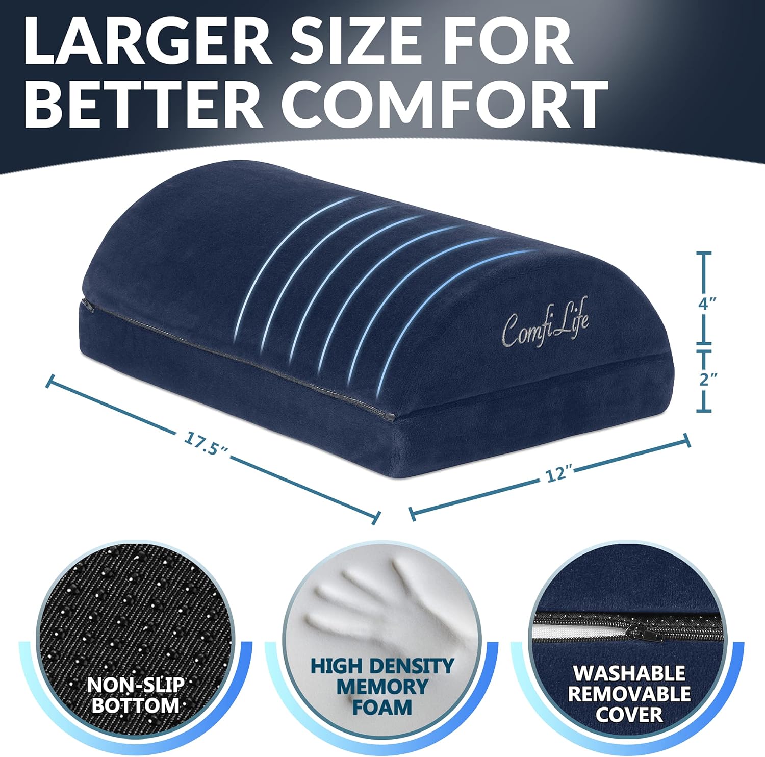 - Multi-Purpose – ComfiLife footrests can be used for more than just elevating your feet. You can also use our foam footrest underneath your knees for support while laying down or flip it over and use it as a rocker for underneath your chair. Since it is made from lightweight foam materials, you can easily take it with you on the go. You can bring our footrest on a plane, when working in the office, or just if you want to work on your laptop on the couch.
