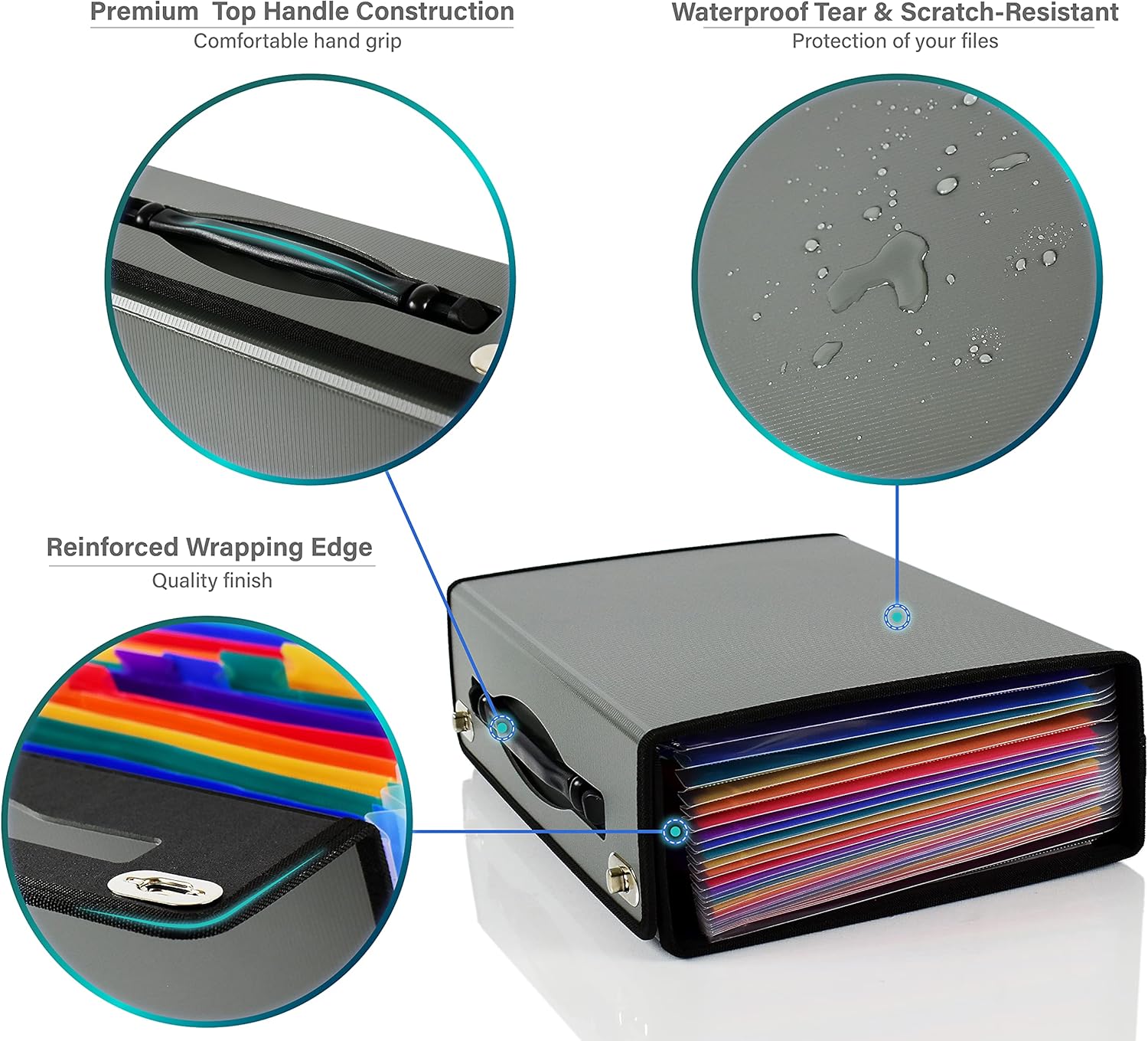 - 24 Individual Pockets with Colorful stylish design are tabbed to allow for adding handwritten labels, ensuring each section can be instantly identified for quick access.