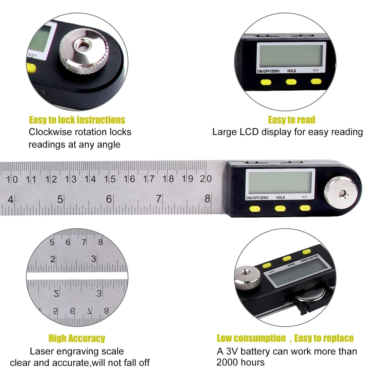 - 2-in-1: Digital Stainless Steel Ruler and Angle Finder - Easy Measurement of Inside and Outside Angles