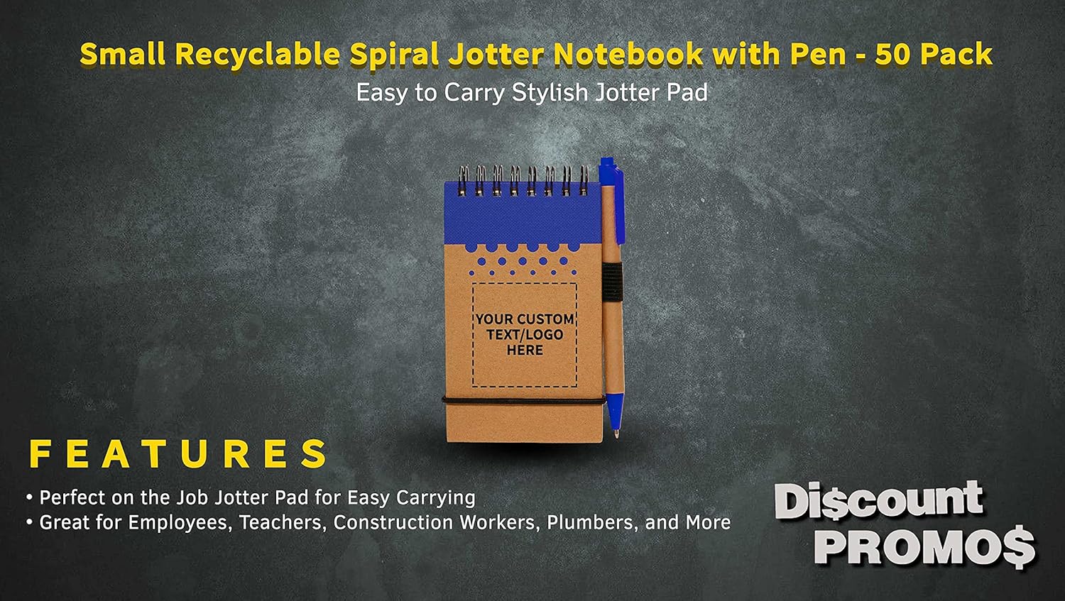 DISCOUNT PROMOS 50 Recyclable Spiral Small Notebooks Pack - Customizable Text, Logo - 60 Lined Pages - Blue