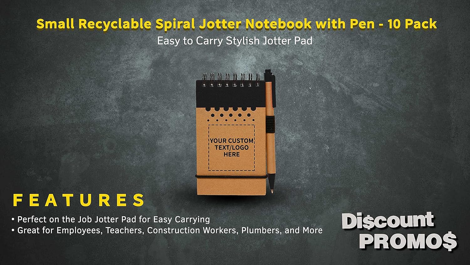 DISCOUNT PROMOS 10 Recyclable Spiral Small Notebooks Pack - Customizable Text, Logo - 60 Lined Pages - Black
