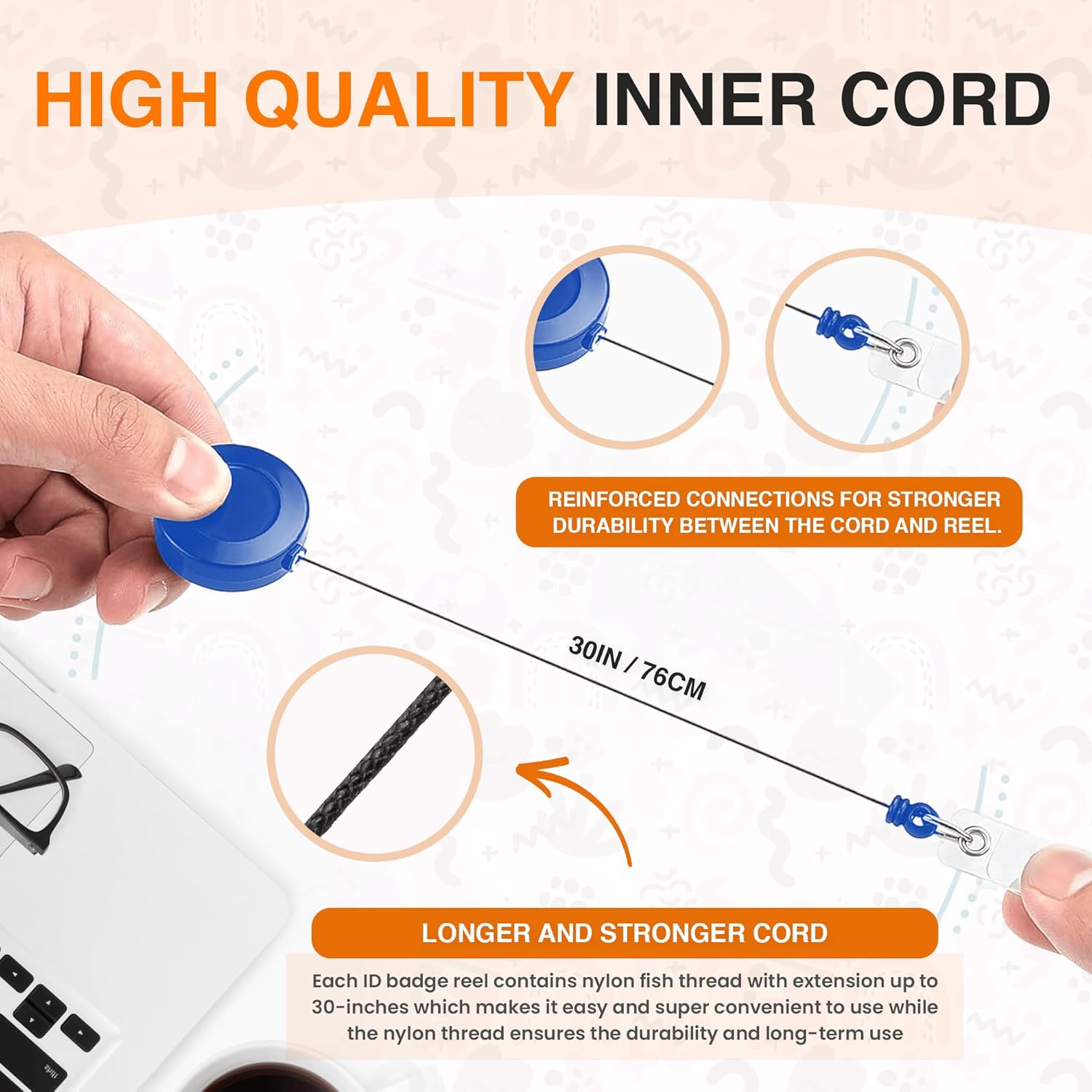 - 【TOP QUALITY BADGE REEL】: Our retractable badge clip is made of high-quality ABS shell and high-strength nylon fish thread of badge clip with 30-inch extension makes retractable badge reel easier to use your ID card. The spring at the joint of id retractable badge holder can reduce the tension and effectively prevents the cord from breaking. All above advantages make it durable