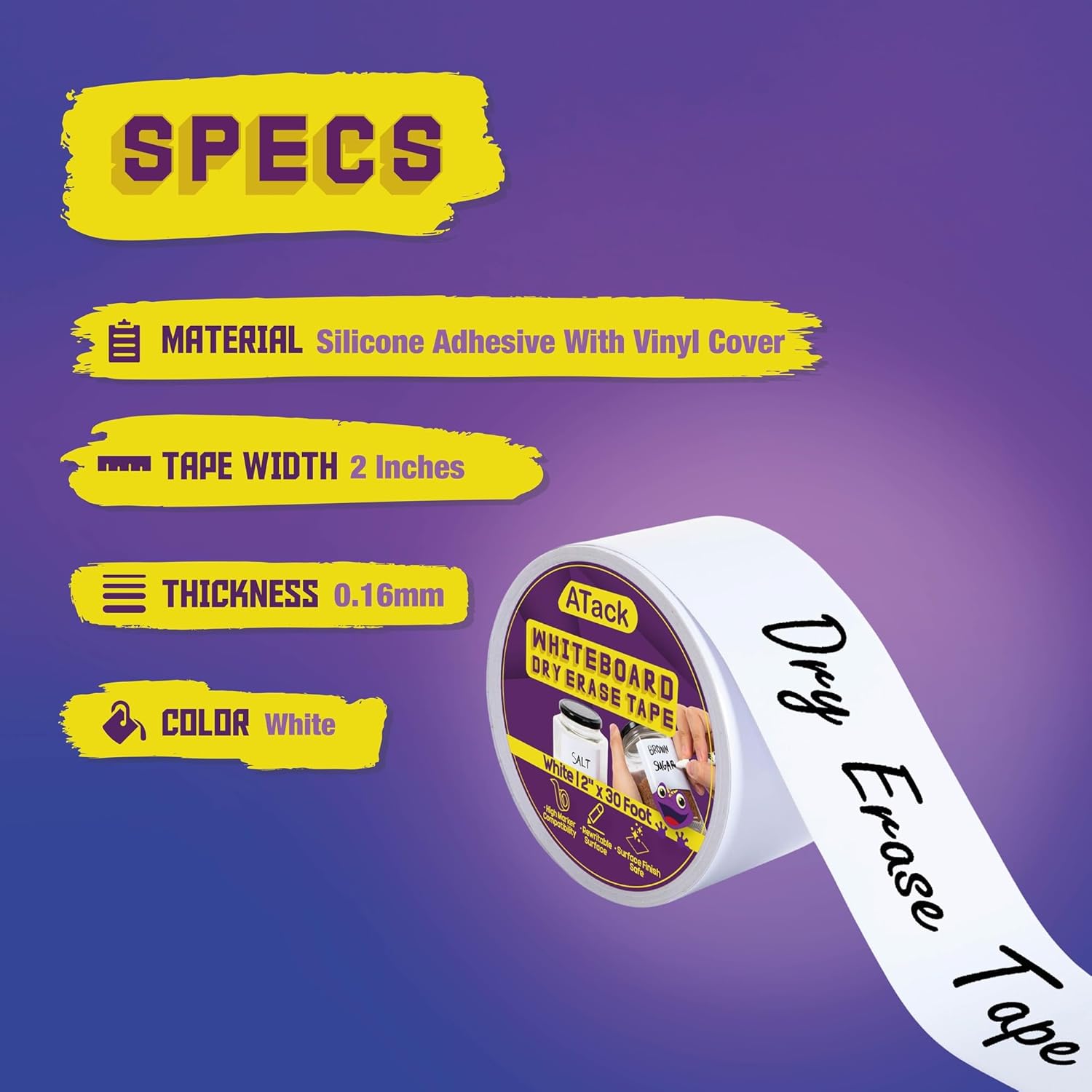- PERFECT DRY ERASE LABEL TAPE FOR CLASSROOMS. The ATack Whiteboard Dry Erase Tape Roll is a residue-free dry erase board tape that resists smudging and is compatible with all dry erase markers. It is perfect as a dry erase label for storage bins and shelves and a teacher’s companion for sentence strips and word bubbles for Guided Reading lessons.