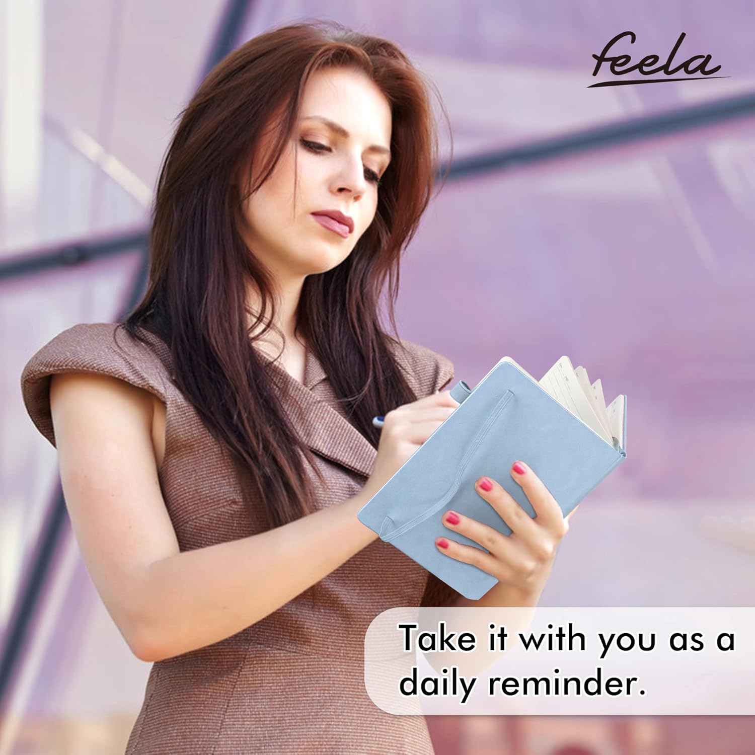 feela 24 Pack Journal Notebook for Work, Business Notebook Bulk Hardcover Lined Writing Journal with Pen Holder for Men Women Note Taking, with 24 Black Pens, 120 GSM, 5.1”x8.3”, A5, Light Blue