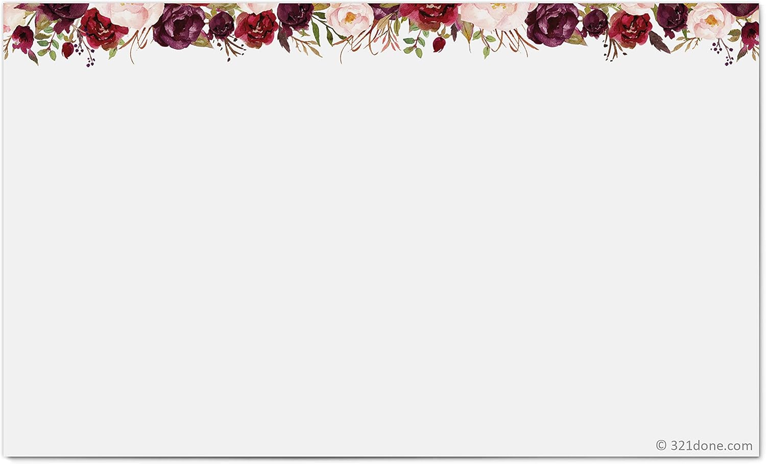 321Done Red Rose Floral Index Cards - Blank, No Lines - (50) Small 3x5 White Cards - For Studying, Learning, Flashcards, Desk Notes, Messages, Notecards, Card Making - Cute, Pretty - Made in the USA