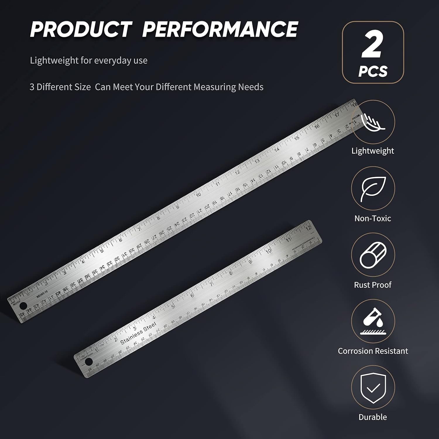 - Multi-size to use: this set includes 2 piece rulers which measurement in 12,18 inches, one size is 30 x 3.2 cm,measure range of 12 inch, another is 45 x 3.2 cm, measure range of 18 inch, can meet your different measuring needs