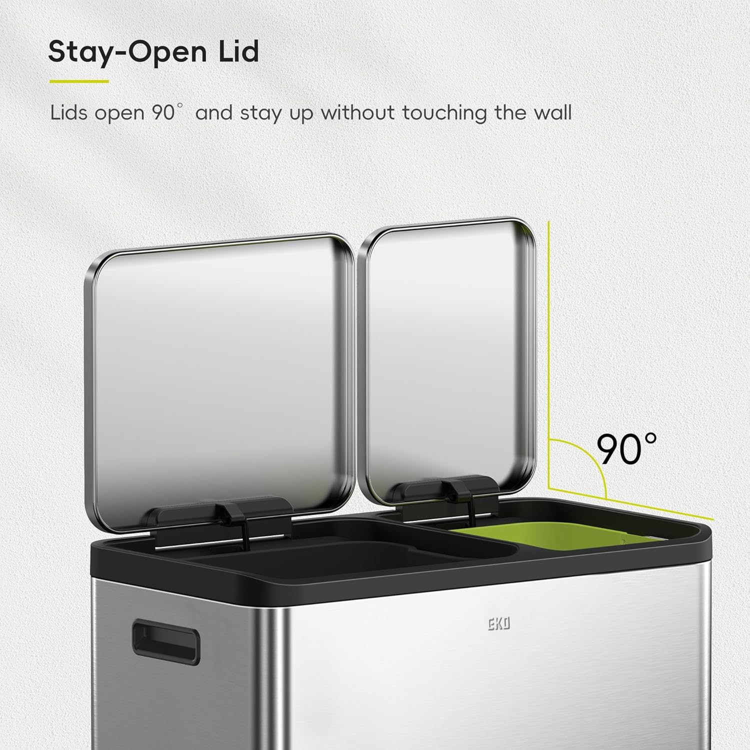 - Dual Compartment Trash Can - Easily distinguish between waste and recyclables with 2 removable, color-coded inner buckets (one 30 liter bucket, and one 20 liter bucket).