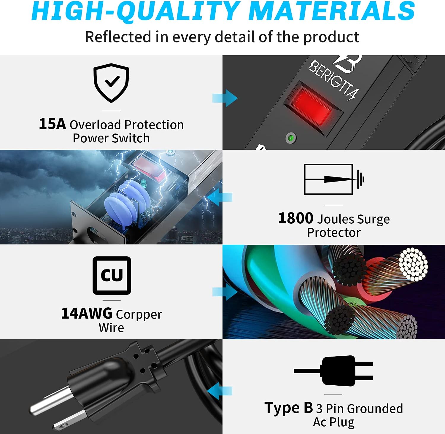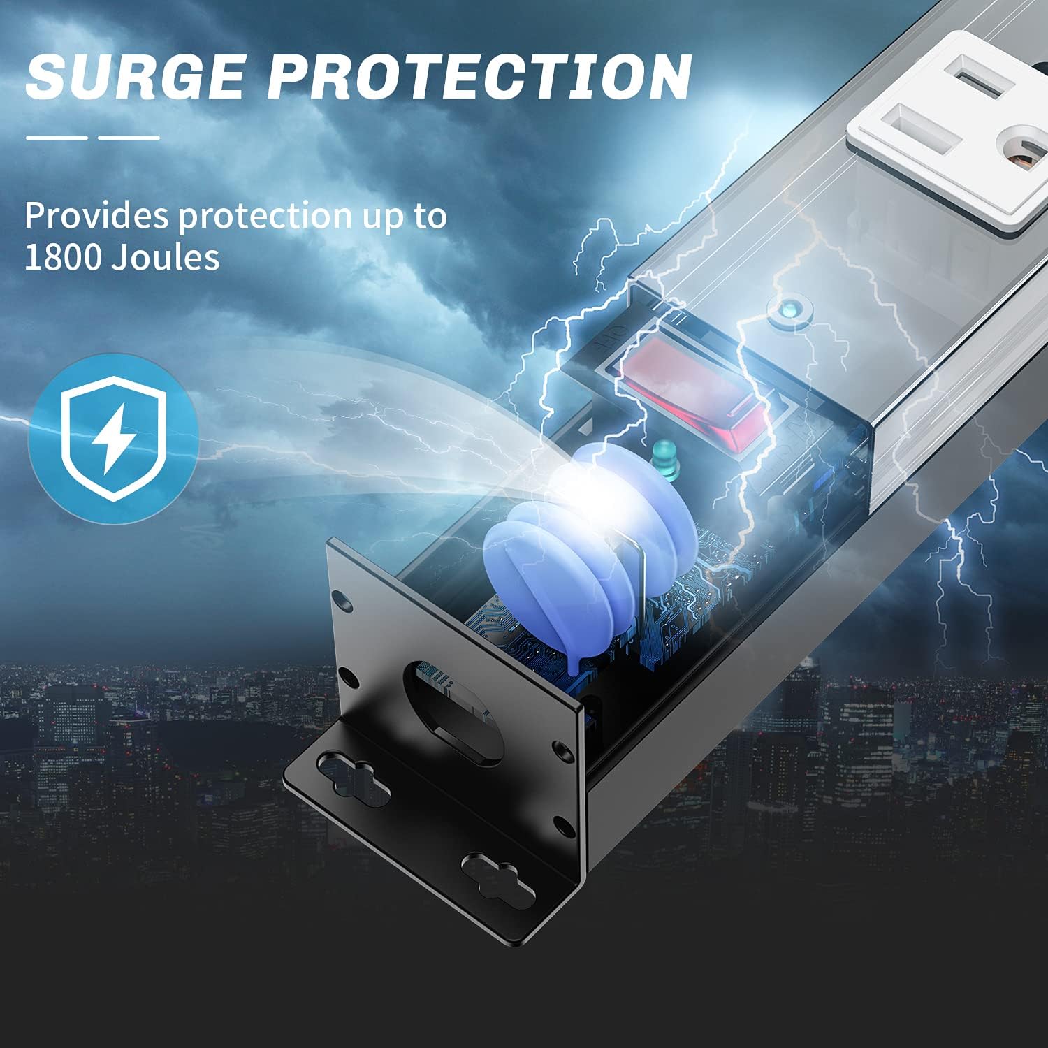 - ✅【SURGE PROTECTED POWER STRIP】This metal power strip is 1800 Joule surge protection & EMI filter & built-in 15A circuit breaker provide superior protection for everyday use in professional work areas and home offices, protecting computers, peripherals and other electronic devices from damaging surges, voltage fluctuations and noise spikes.