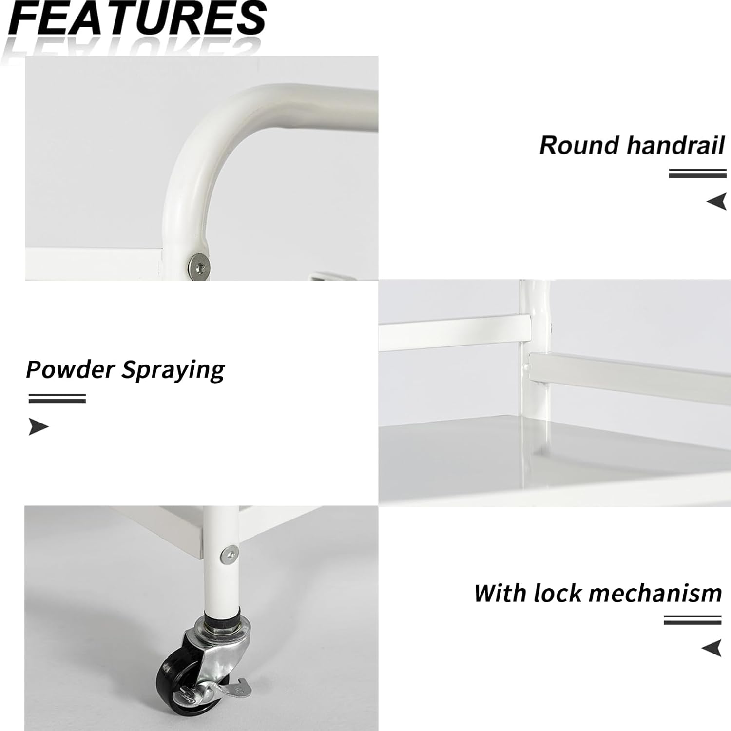 - 【Multi functional practical trolley】This white 3-tier metal rolling cart with wheels has a wide range of uses. It is commonly used in kitchen storage carts, bathroom carts, tool storage carts, dining carts, snack carts, and storage utility carts. It is also often used for 3-layer storage rack with wheels, flower rack、plant rack, printer rack,Storage shelves、 document rack, and it is often placed in kitchen, living room, bathroom, office, bedroom bedside table, etc