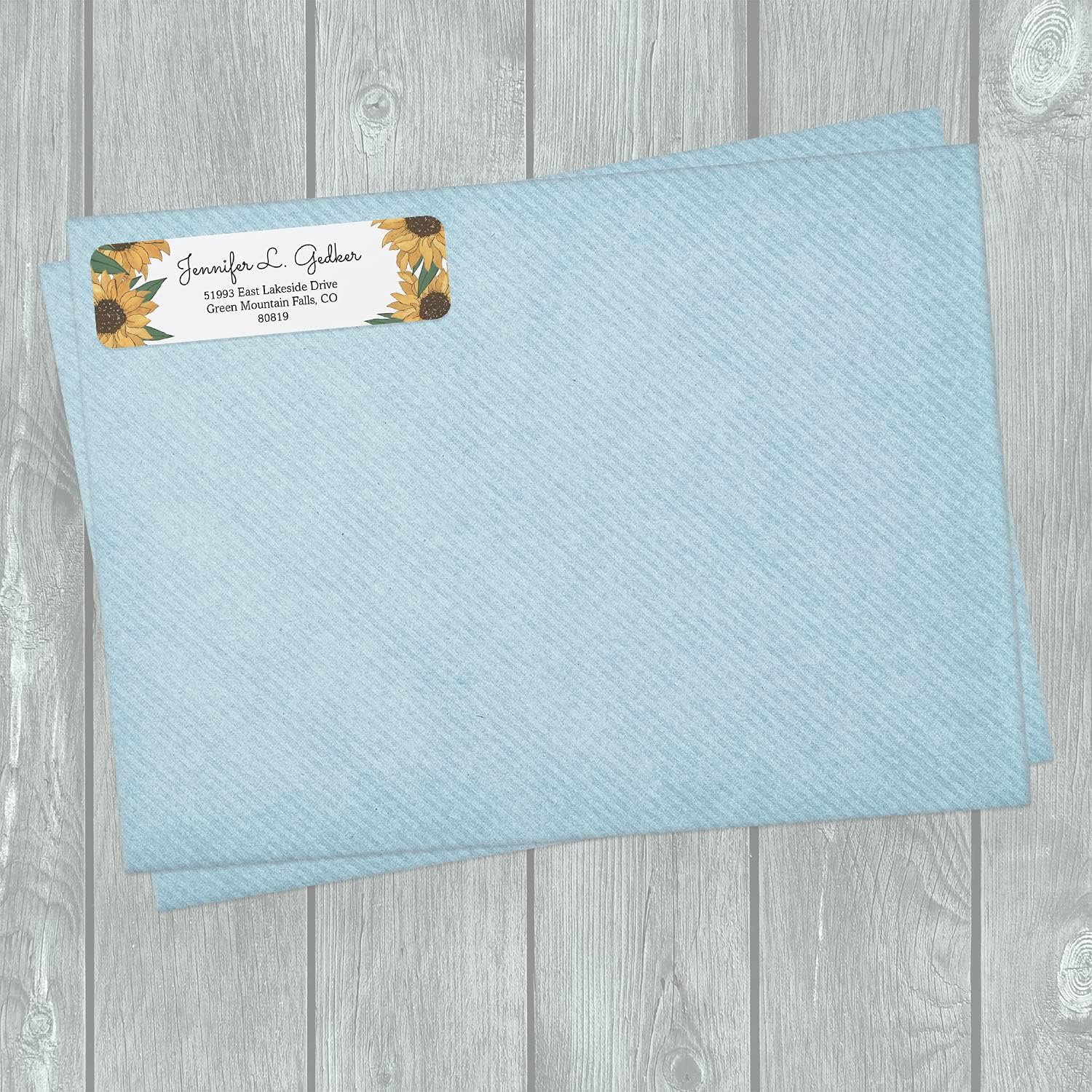 Illustrated Sunflower Rolled Address Labels/Roll of 250 Floral Garden Personalized Address Labels/Designer Return Address Stickers in Elegant Plastic Dispenser