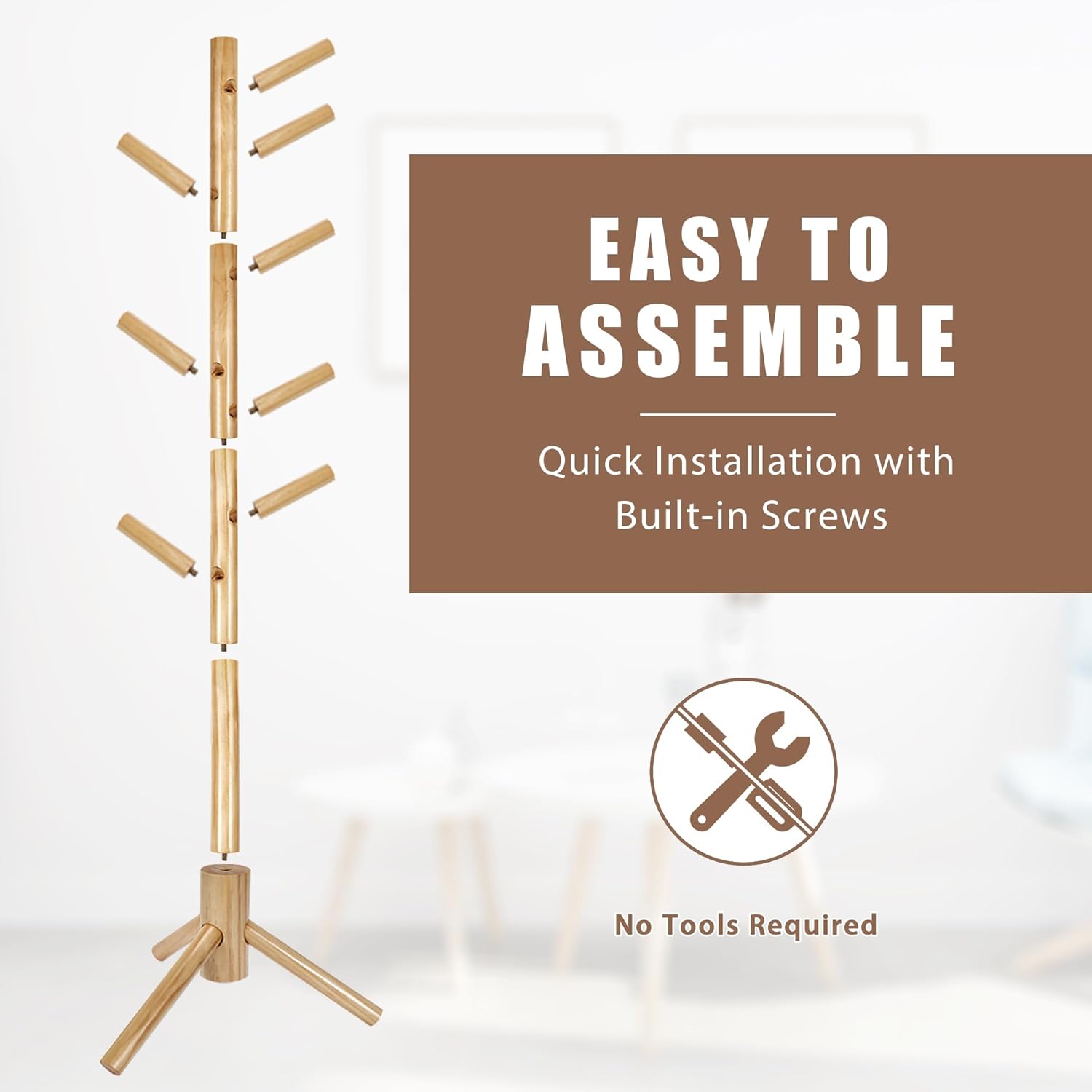 - EASY TO ASSEMBLE: No Tools Required. The coat rack is equipped with metal screw holes. You can assemble it with our assembly instruction manual in just a few minute