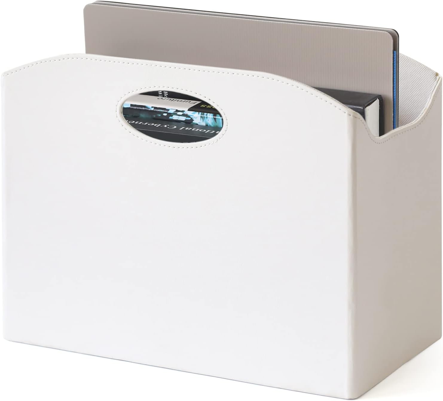 EZDeco Magazine Holder Foldable Magazine Rack Floor PU Leather File Holder Newspaper Book Storage Basket Document File Folder Organizer for Office Home (White-1)