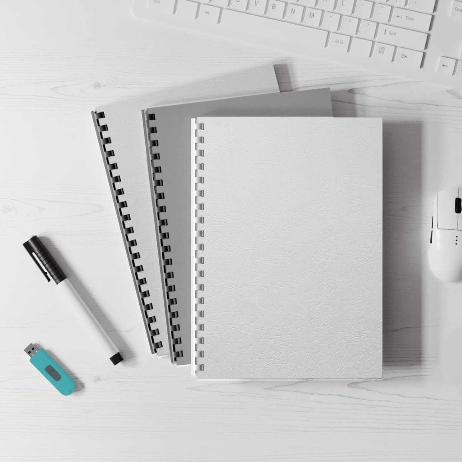 Binditek 100 Pack Grain Texture Paper Binding Presentation Covers, 13Mil, 90lb, Un-Punched, 8-1/2 x 11 Inches, Square Corners, White, Office Supplies